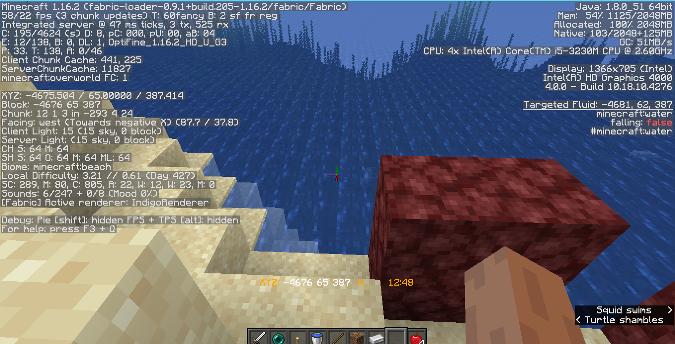Please provide a screenshot of the area with the F3 debug screen enabled.