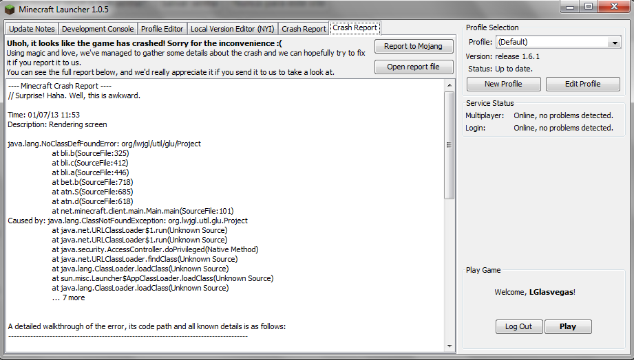 Vec3 Pool Size: ~~ERROR~~ NullPointerException: null---- Minecraft Crash Report ----