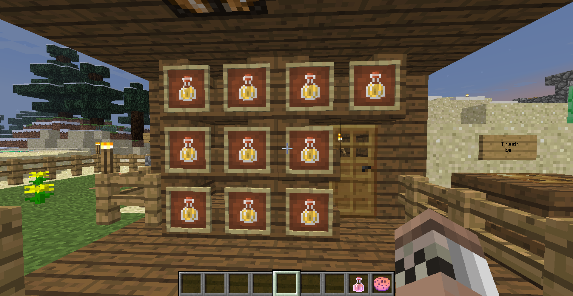I was on creative on the new 1.6.1 and i went to check everything was okay when i looked at a item frame with a potion of fire resistance and it was yellow so i put another one up and it was yellow as well and as another problem there was a golden sword and didn't have the enchantment effect on it so i punched it and it didn't come out