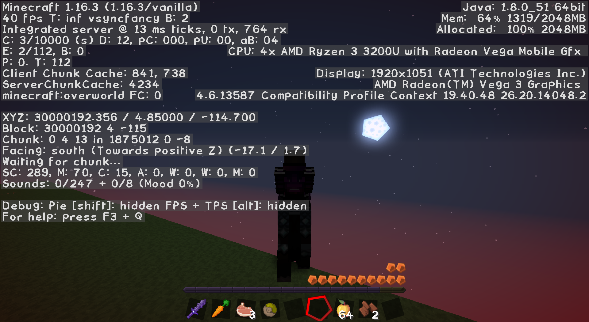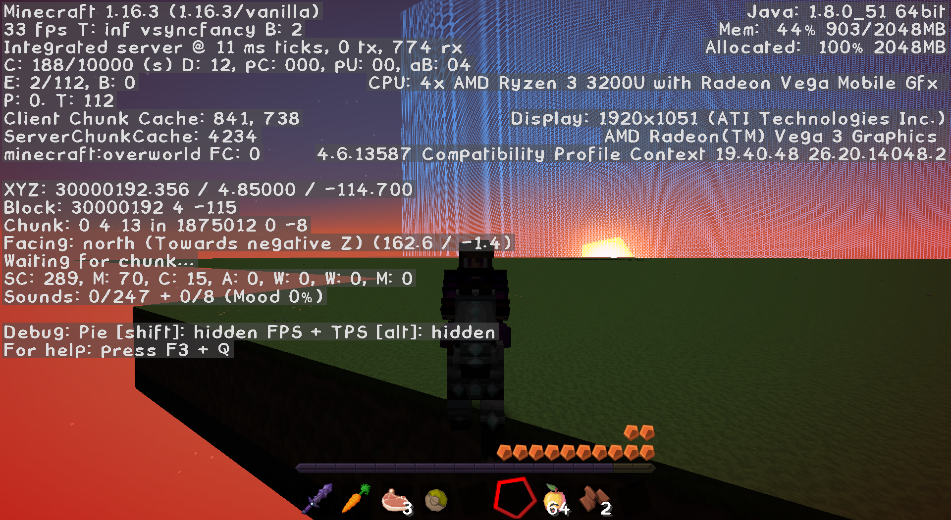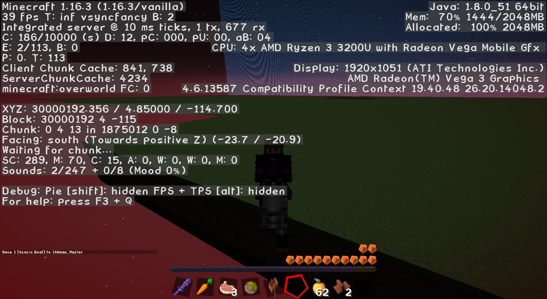 In the F3 menu the biome is "Waiting for chunk..."!!