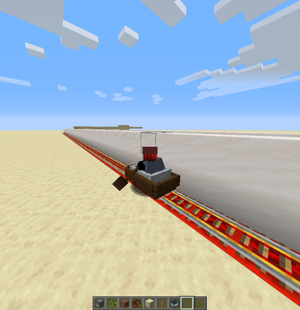 So I put a boat in a track then put a minecart in the place where the boat's hitbox is then I moved the minecart and the boat decided to ride the minecart.