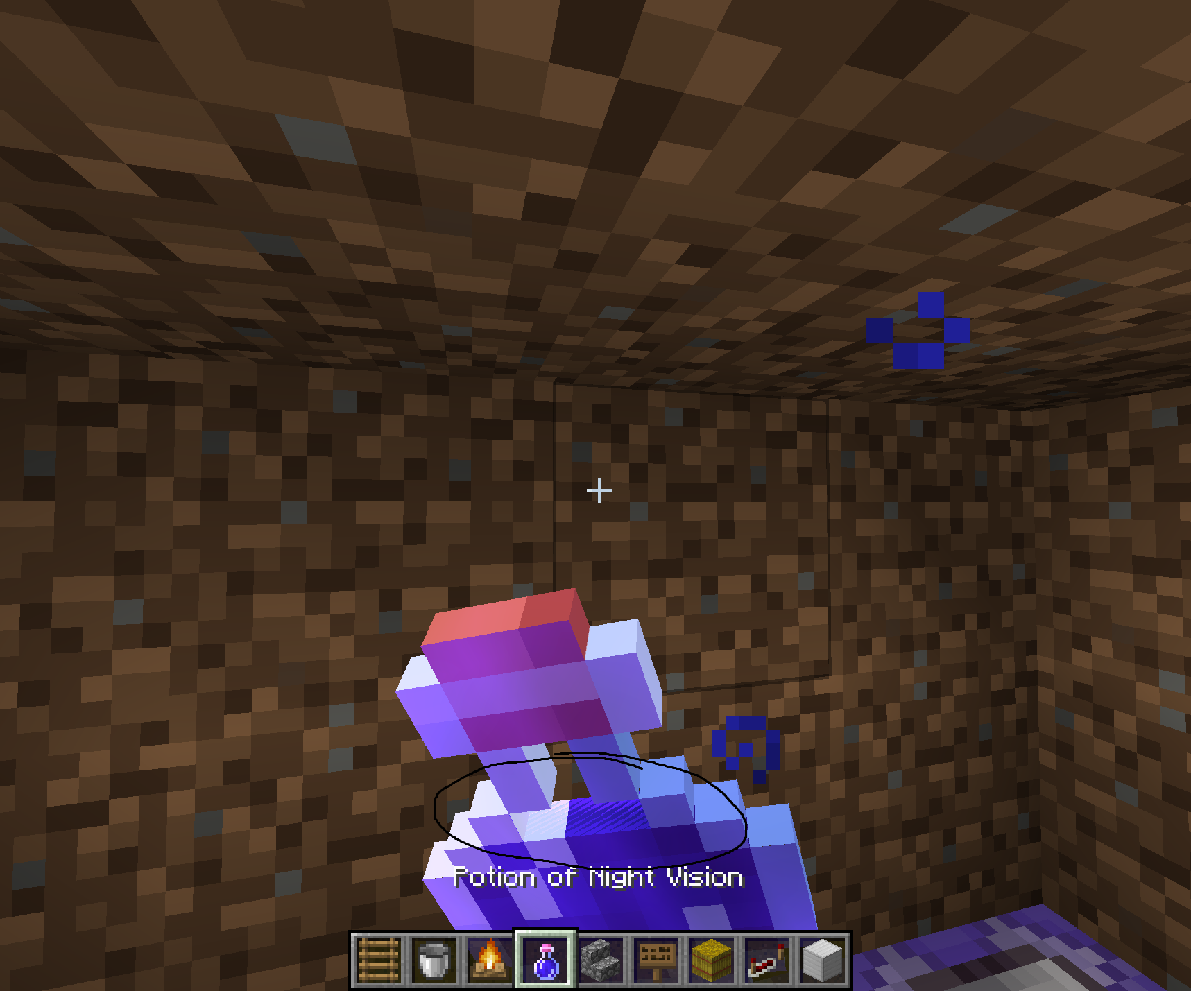 If you look closely at the potion you can see the z fighting at the blue part circled. I haven't noticed this on a water bottle, only the potion. It isnt too much of a problem and I barely even noticed it but it would be a nice extra touch to fix. To recreate it, just drink any potion like nightvision as its the easiest one to see based of of my observations.