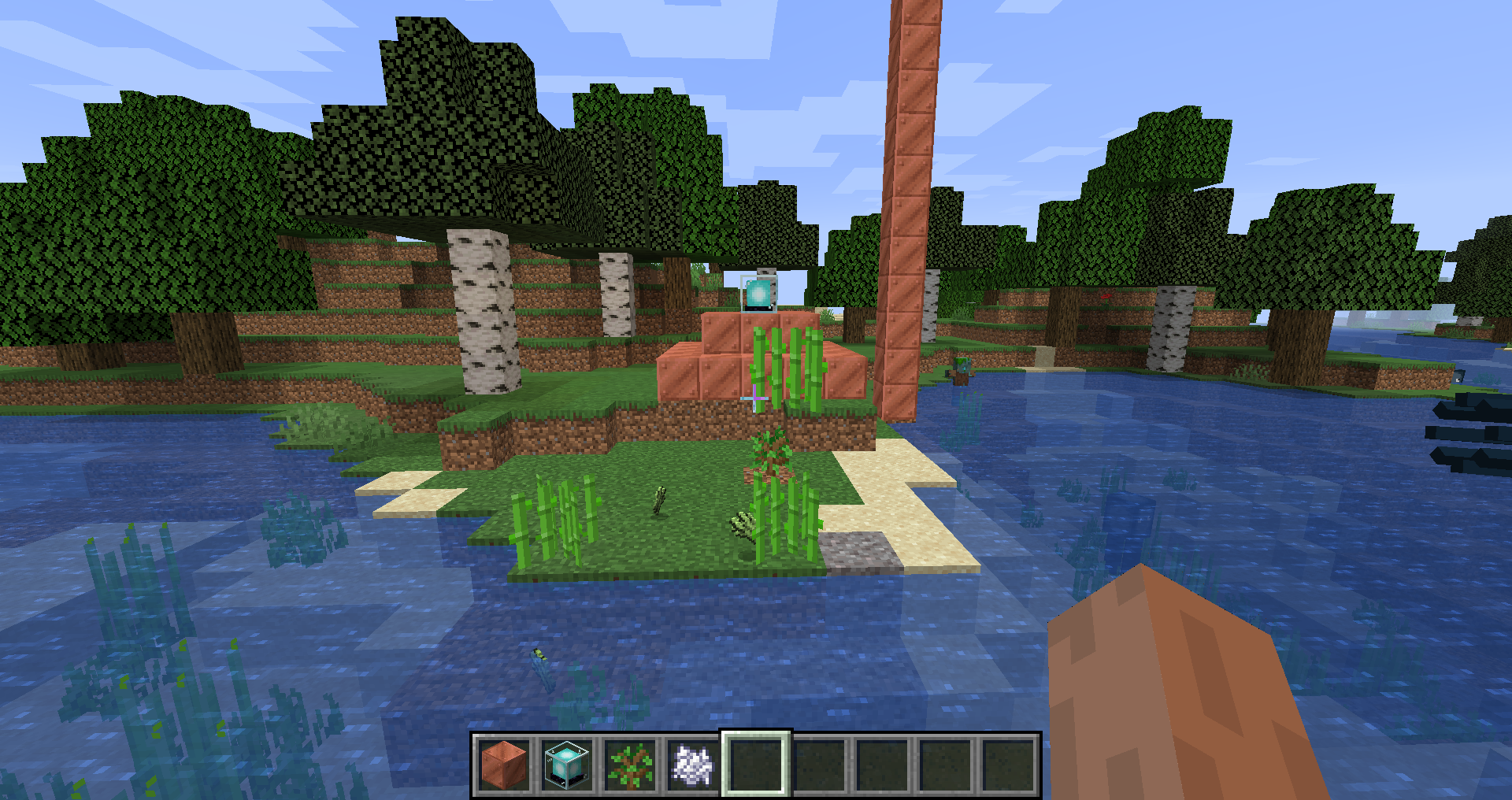 This seems to be a lag issue. When I set the random tick speed higher, mspt shoots up to 200 on a superflat world. Your world looks like it has more plants which might try to grow, so it would make sense that everything would freeze. For some reason I'm not able to attach the video though.