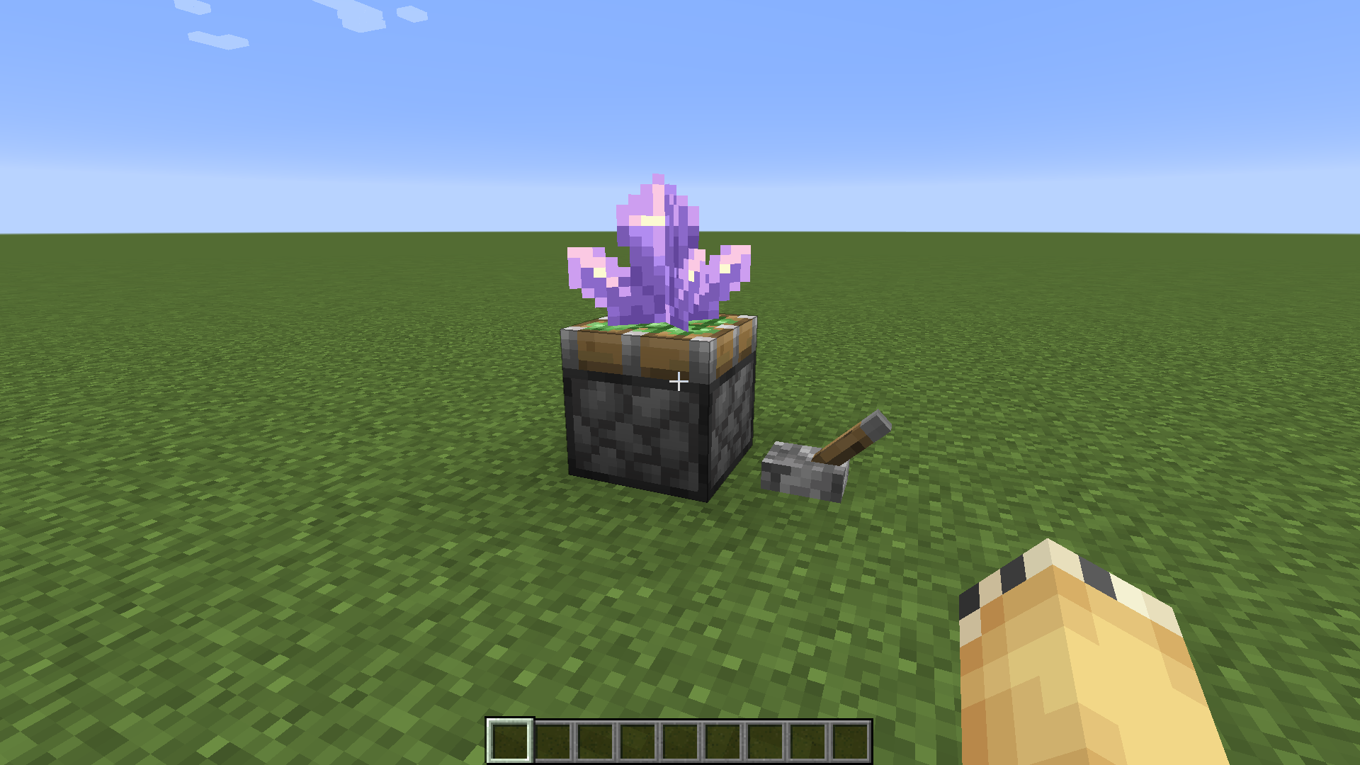 If you place an amethyst cluster on the piston head and then you power the piston and unpower, the amethyst cluster is going to stay there but it will also drop some amethyst shards.