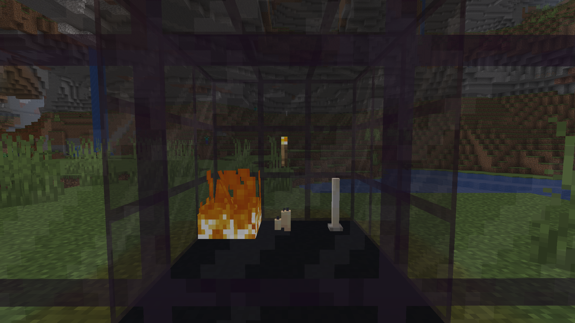 Instructions to recreate: Place items that produce particle effects (fire, torches, end rods, candles, etc.) behind tinted glass. No particles will be visible.