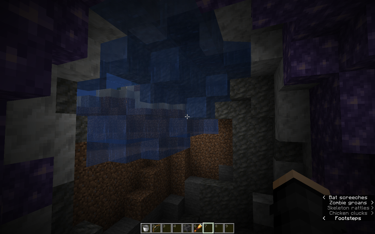 With amethyst geodes spawning at water level, the water is held at a standstill (see image)