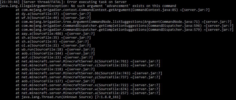 When trying to run an execute command which runs an advancement grant or revoke, it throws a error involving brigadier if the command would fail.