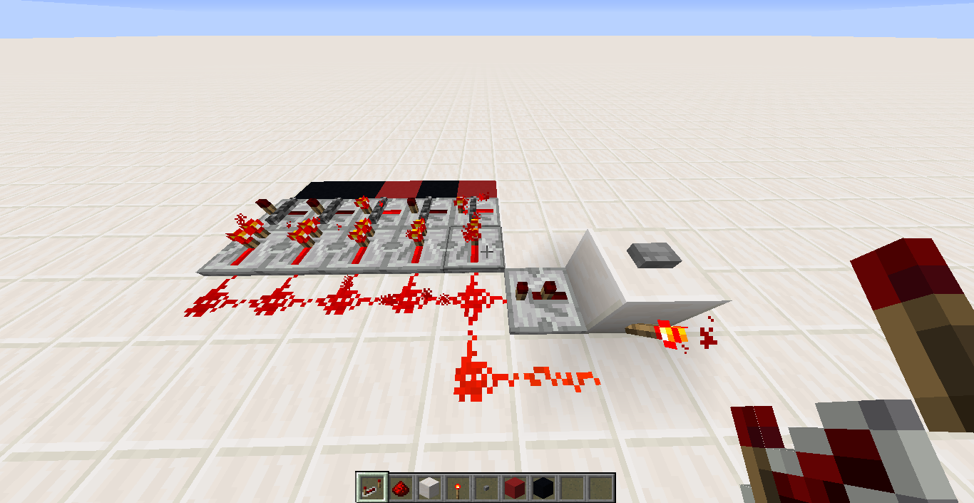 2) input this sequence into the rightmost (rightmost if you build the circuit as i did) 3 repeaters: on-off-on.
