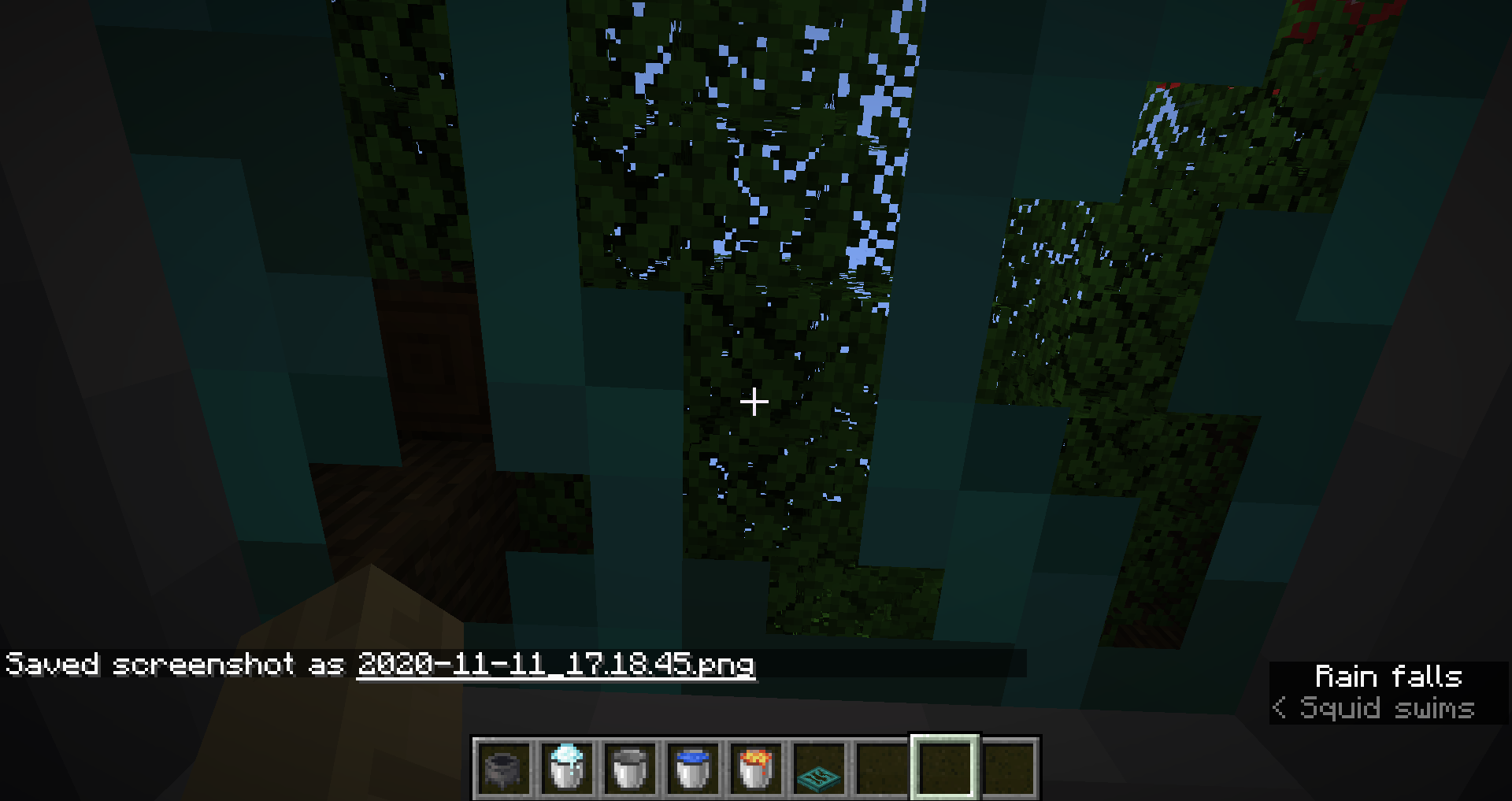 When inside water, lava or powder snow, it's possible to see the surface of that liquid from below. However, for cauldrons, this surface is completely invisible, which makes no sense.