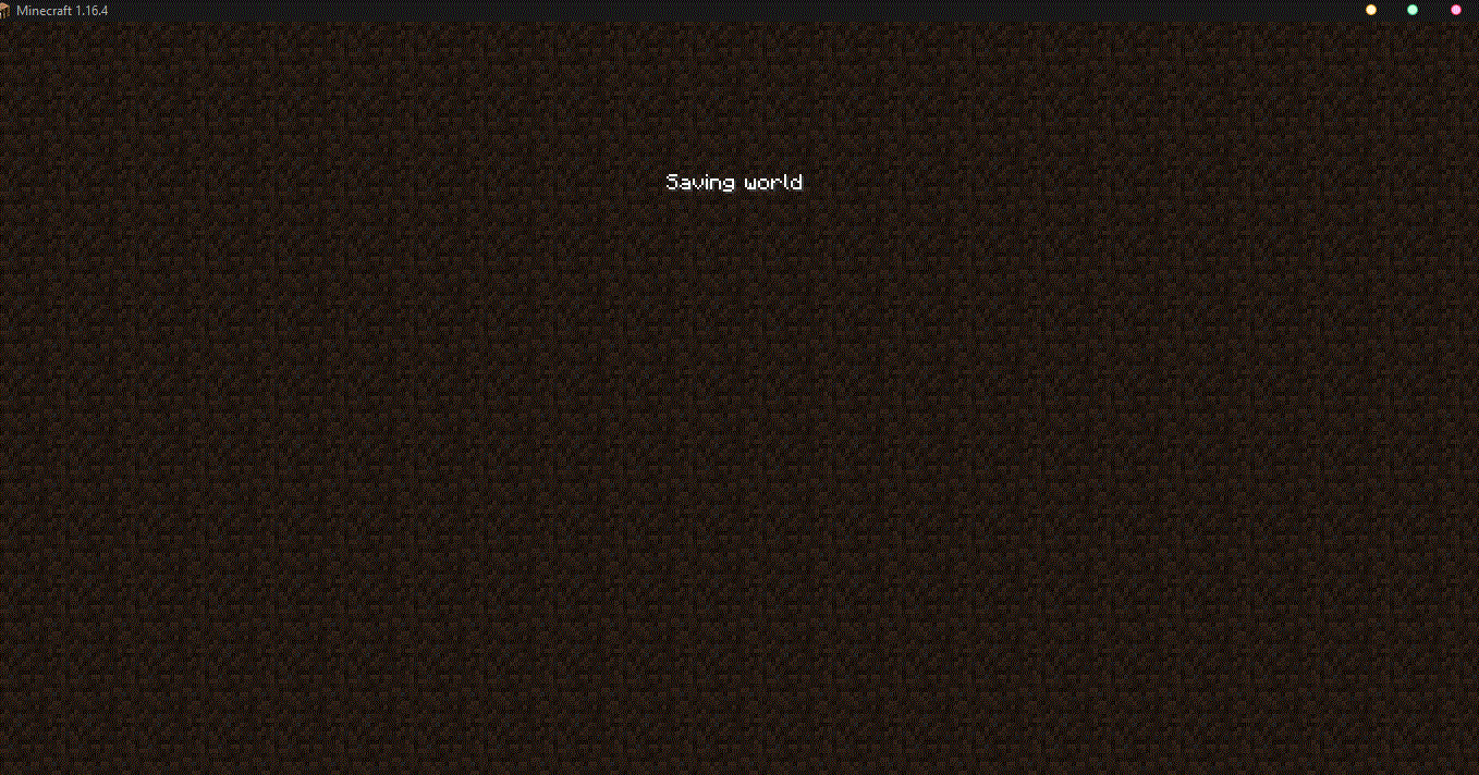 lastly, it switches to the "saving world" screen and stays on it until Minecraft just stops responding