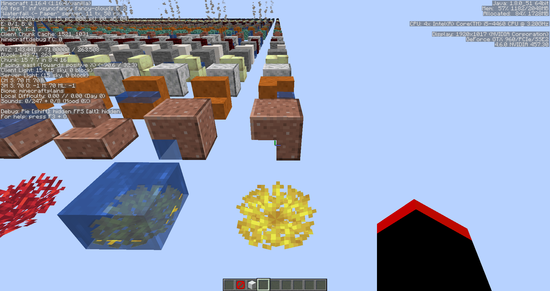 When in the debug world, if you go to row Z=1 its block and state is duplicated from the last block in the previous row Z=263.