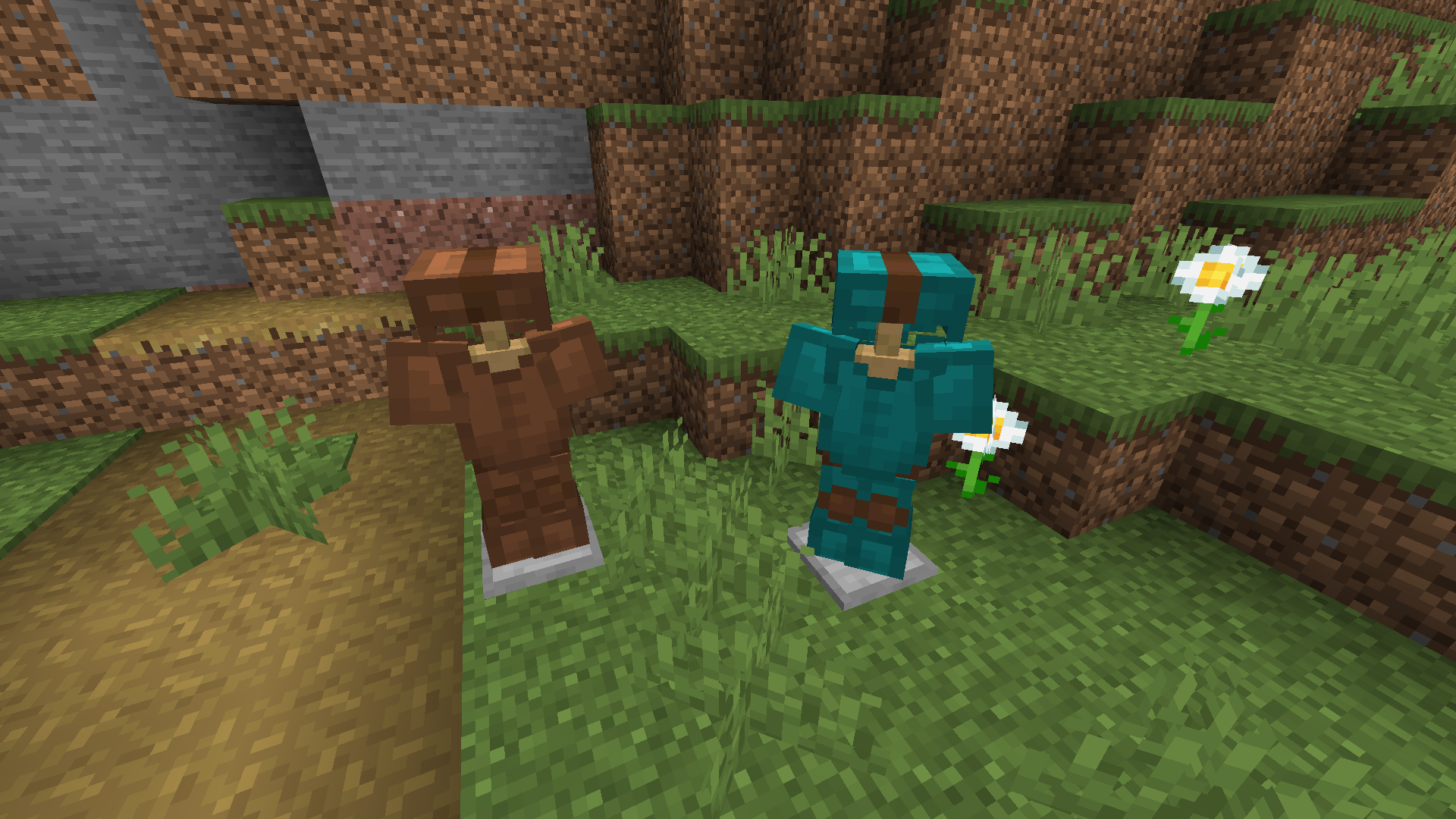 Leather horse armor in resource files, showing no overlay texture while human leather armor contains such textures. Files were extracted from 20w48a (because I was too lazy to do another extraction), while screenshots are from 20w49a.