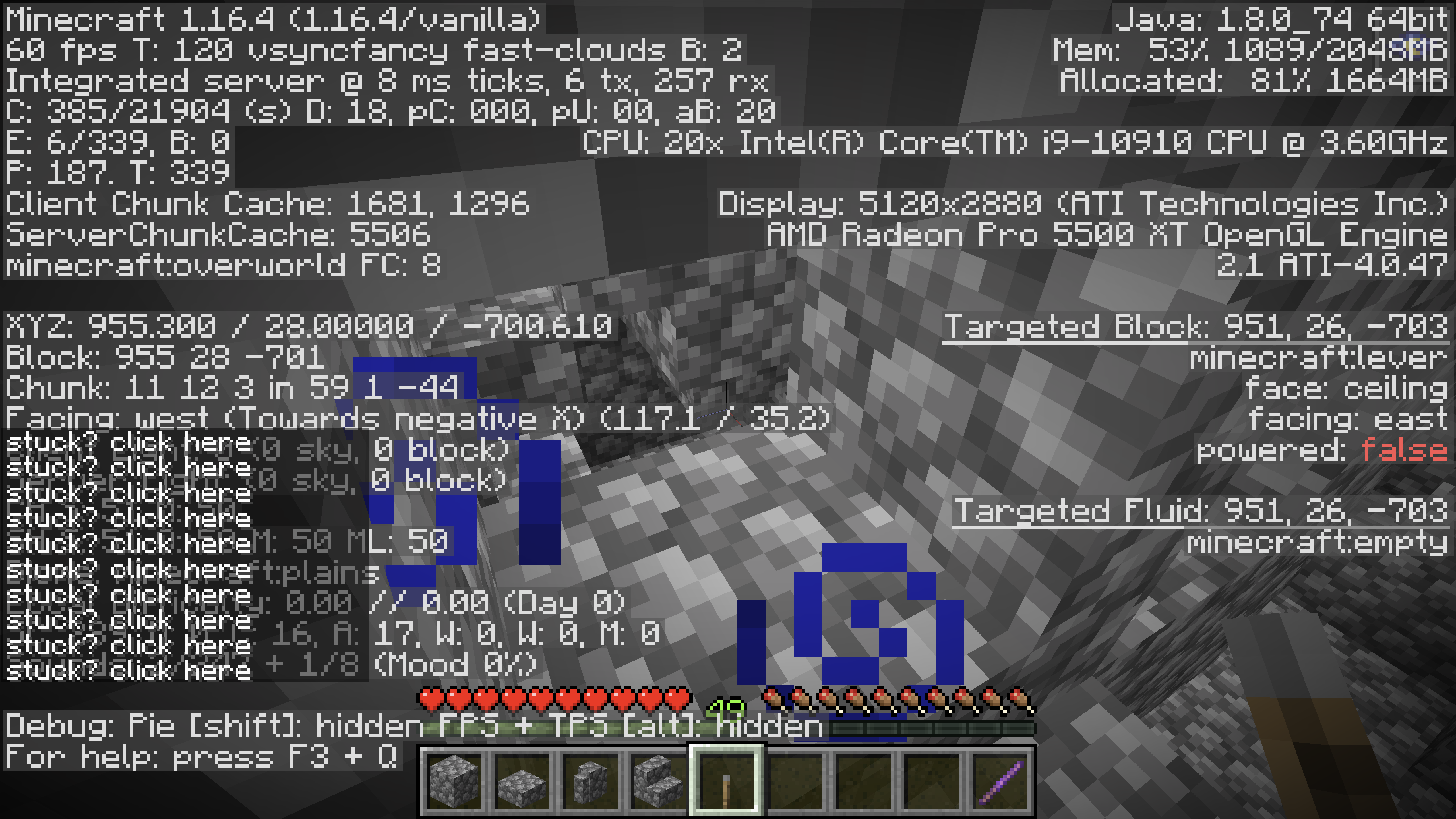Other angles and distances work in this find the lever map but this angle through 4 stairs is working differently in adventure mode than in creative. I don't think adventure mode is suppose to be able to reach leavers differently than in creative.