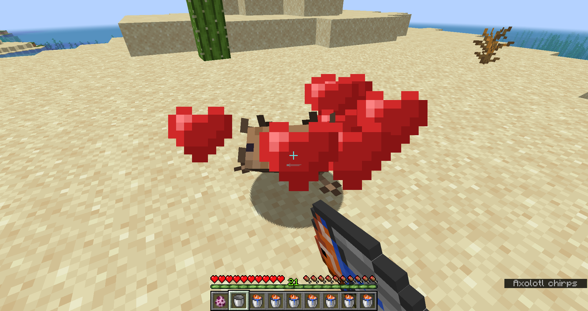 When breeding Axolotls with a Bucket of Tropical Fish it gives back a regular Bucket instead of a Water Bucket. Axolotls eat the fish not water