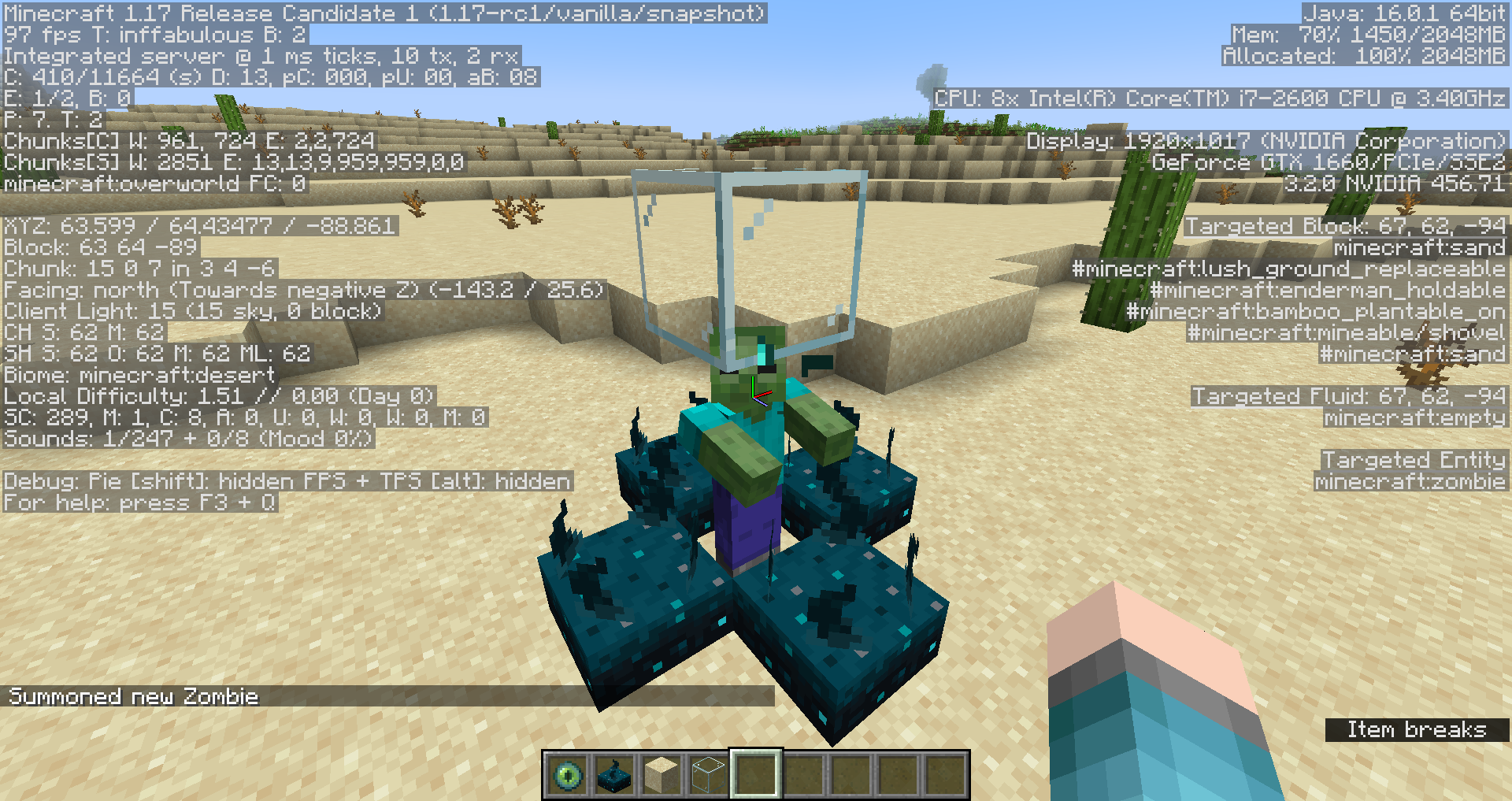 Summon a zombie wearing some armor that is almost broken.