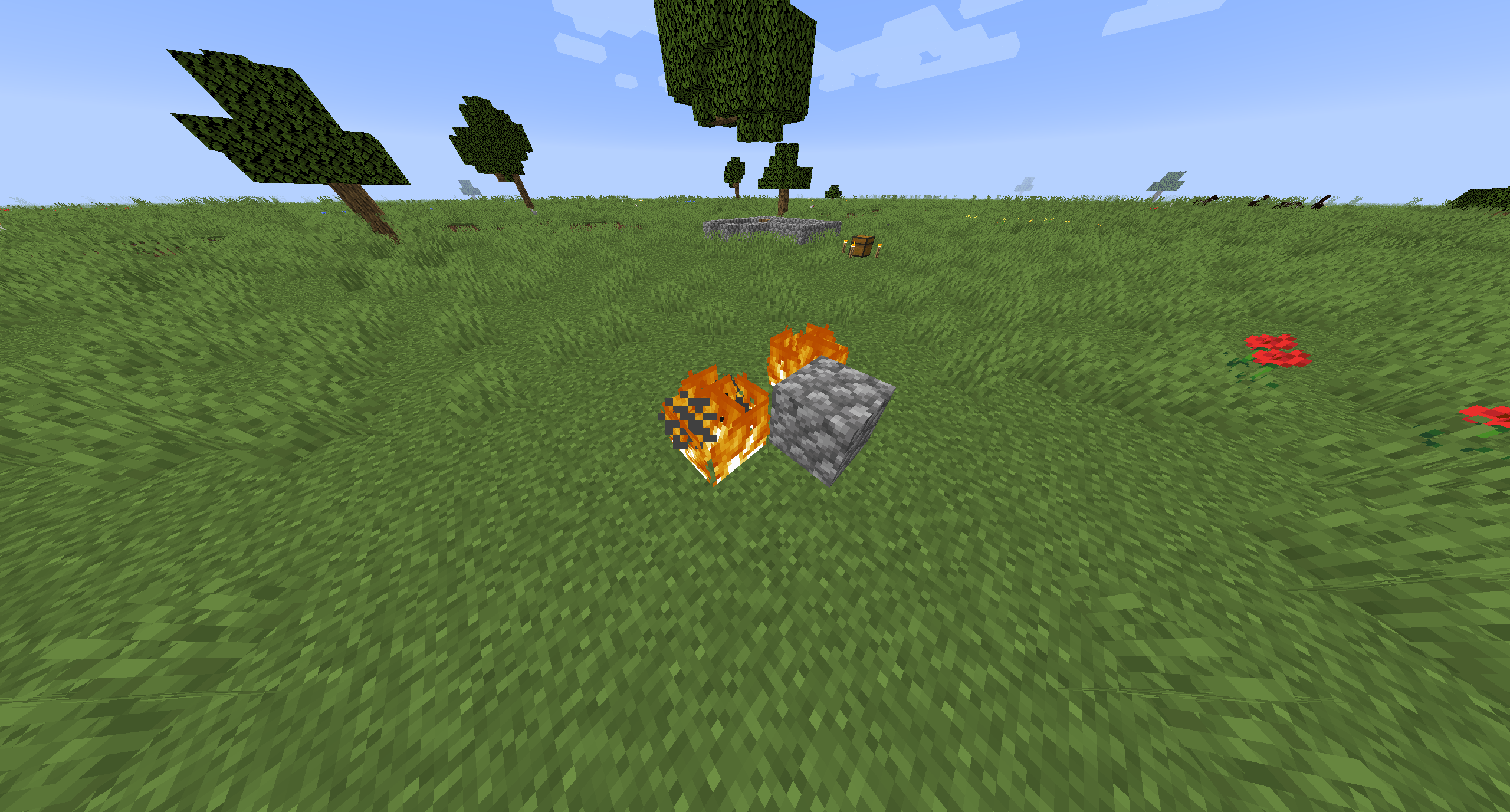 ❌ The flammable block will catch fire, with the fire no-clipping through the non-flammable block. Changing the Mipmap Level will have no effect on the bug. However, if it rains, the process of burning will take longer.