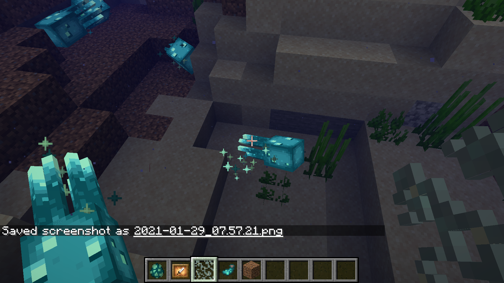 Minecraft Glow Squids will randomly not render above the water. Attached are 2 images of the same place from below and above sea level.
