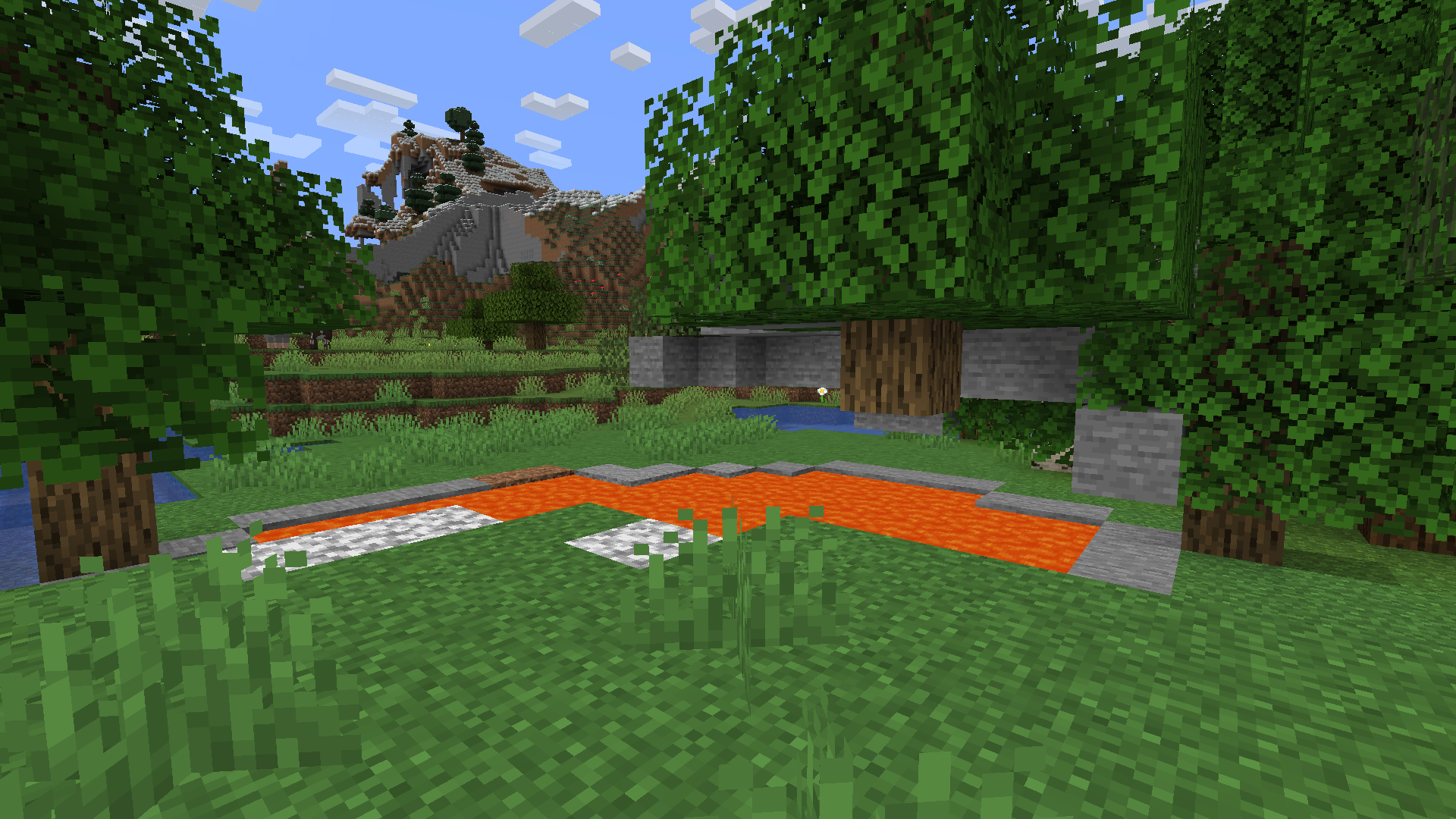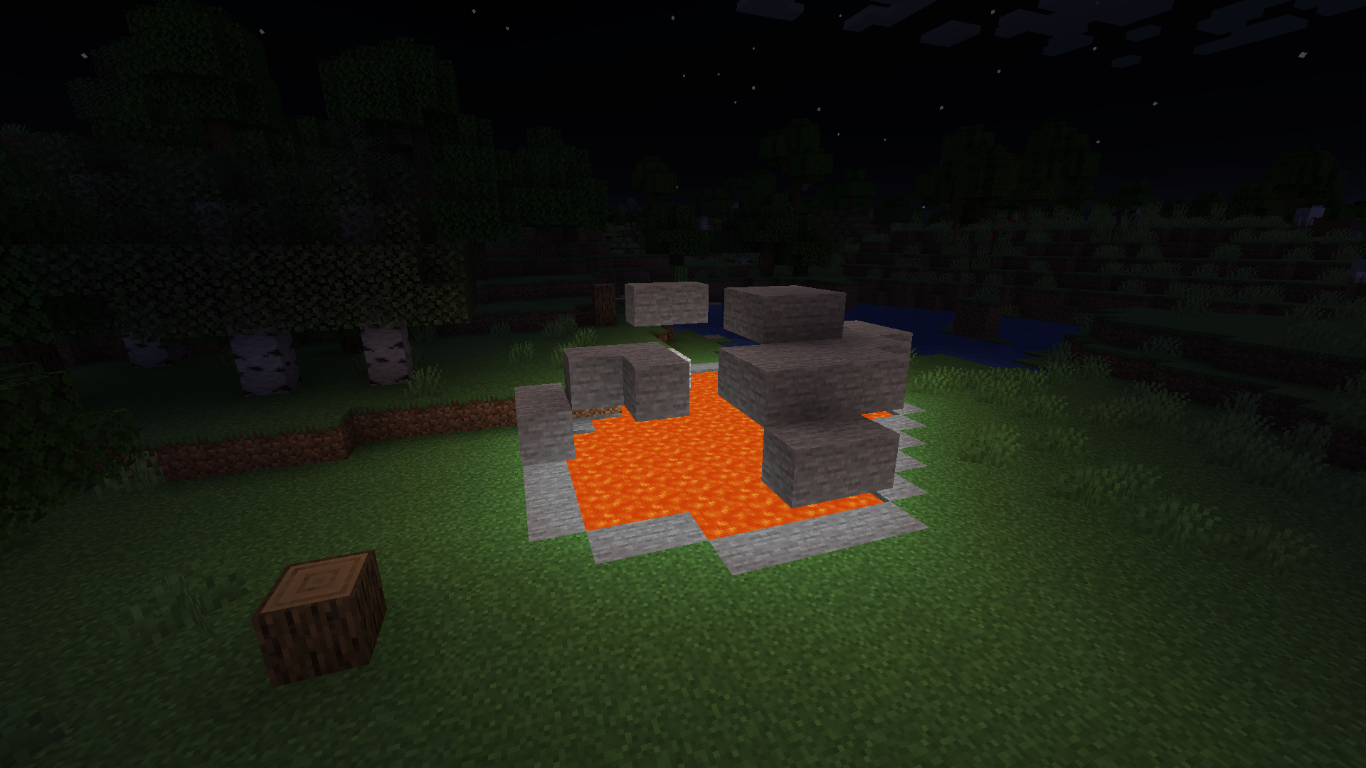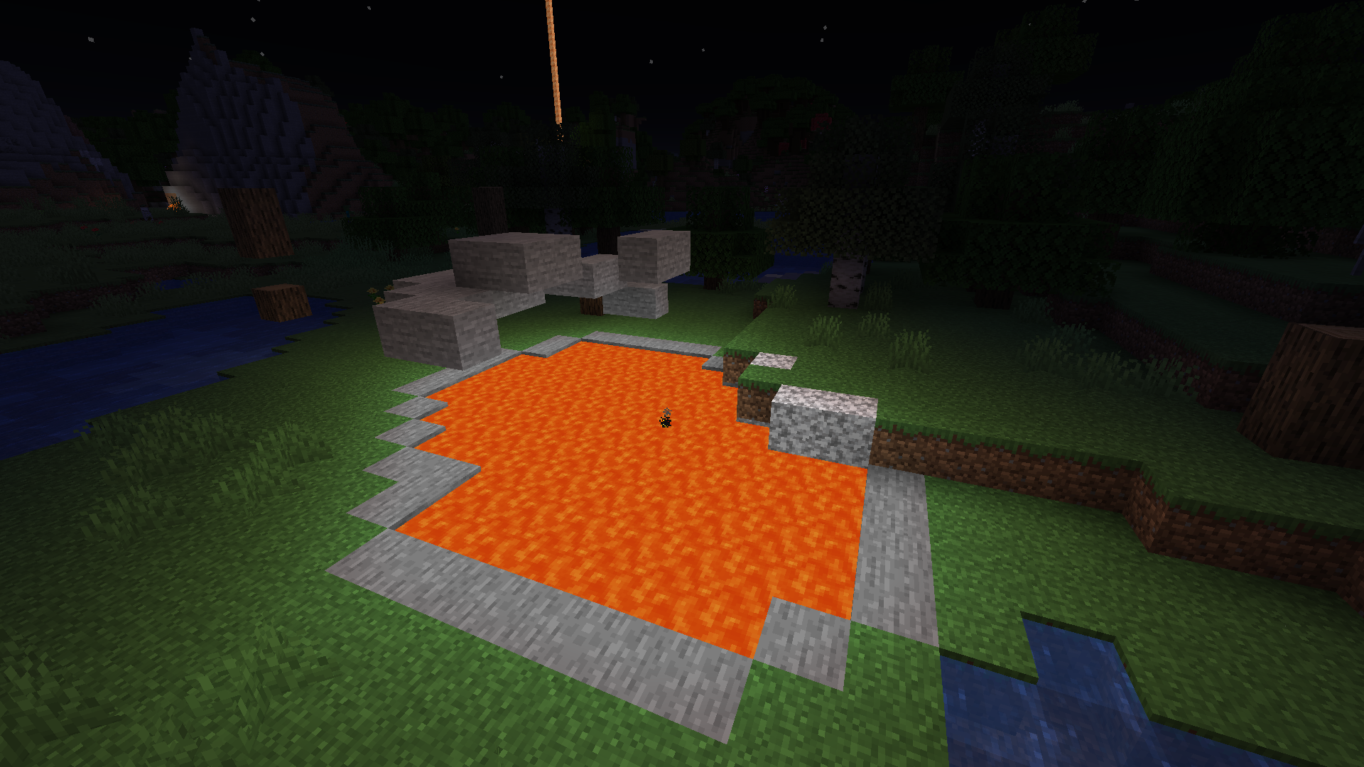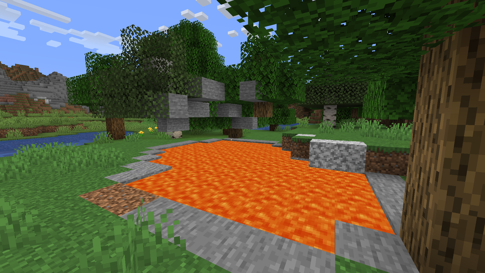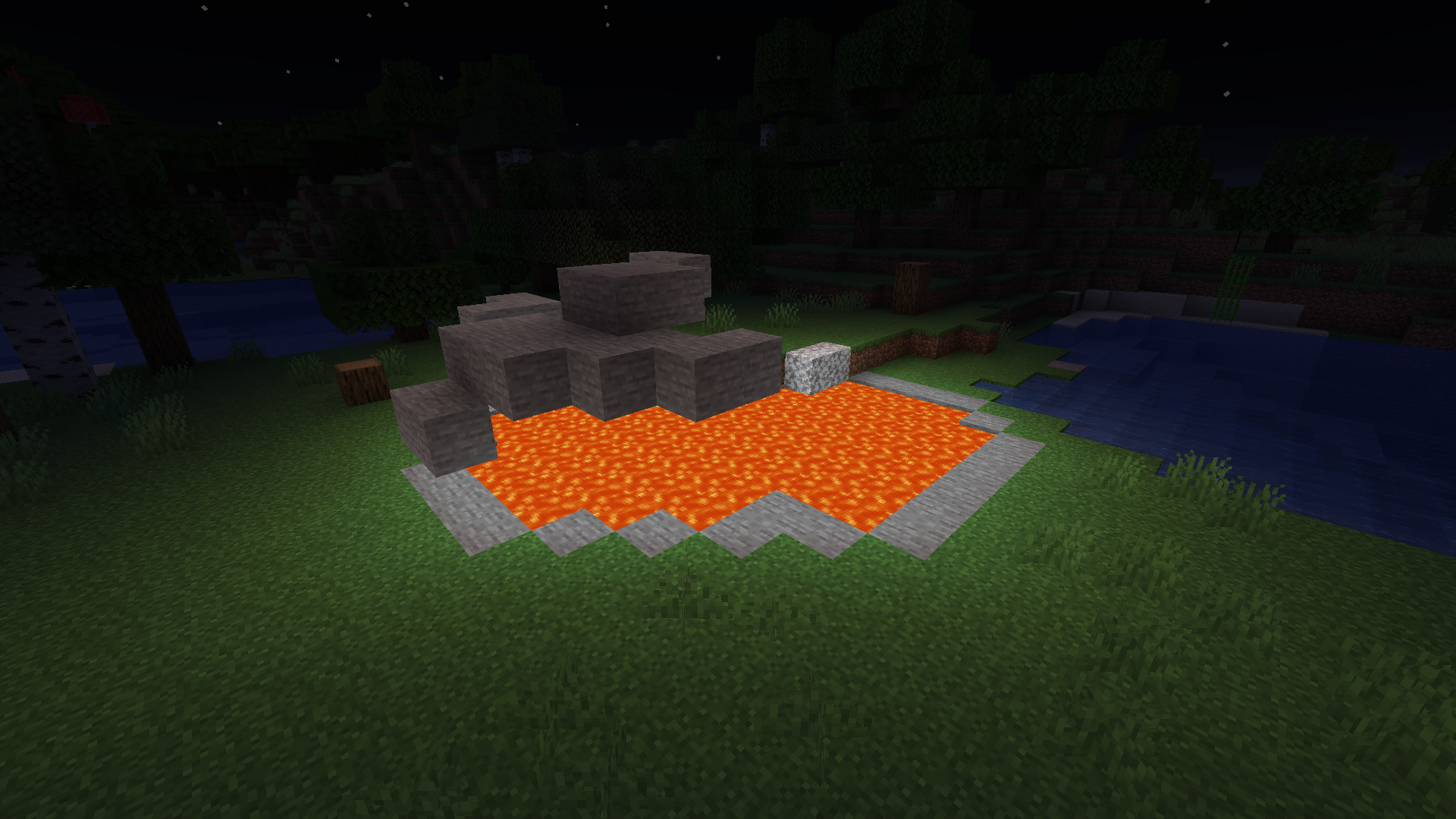While exploring a world generated with snapshot 21w06a, I came across a surface lava lake that had a "shell" of stone floating in the air above it.