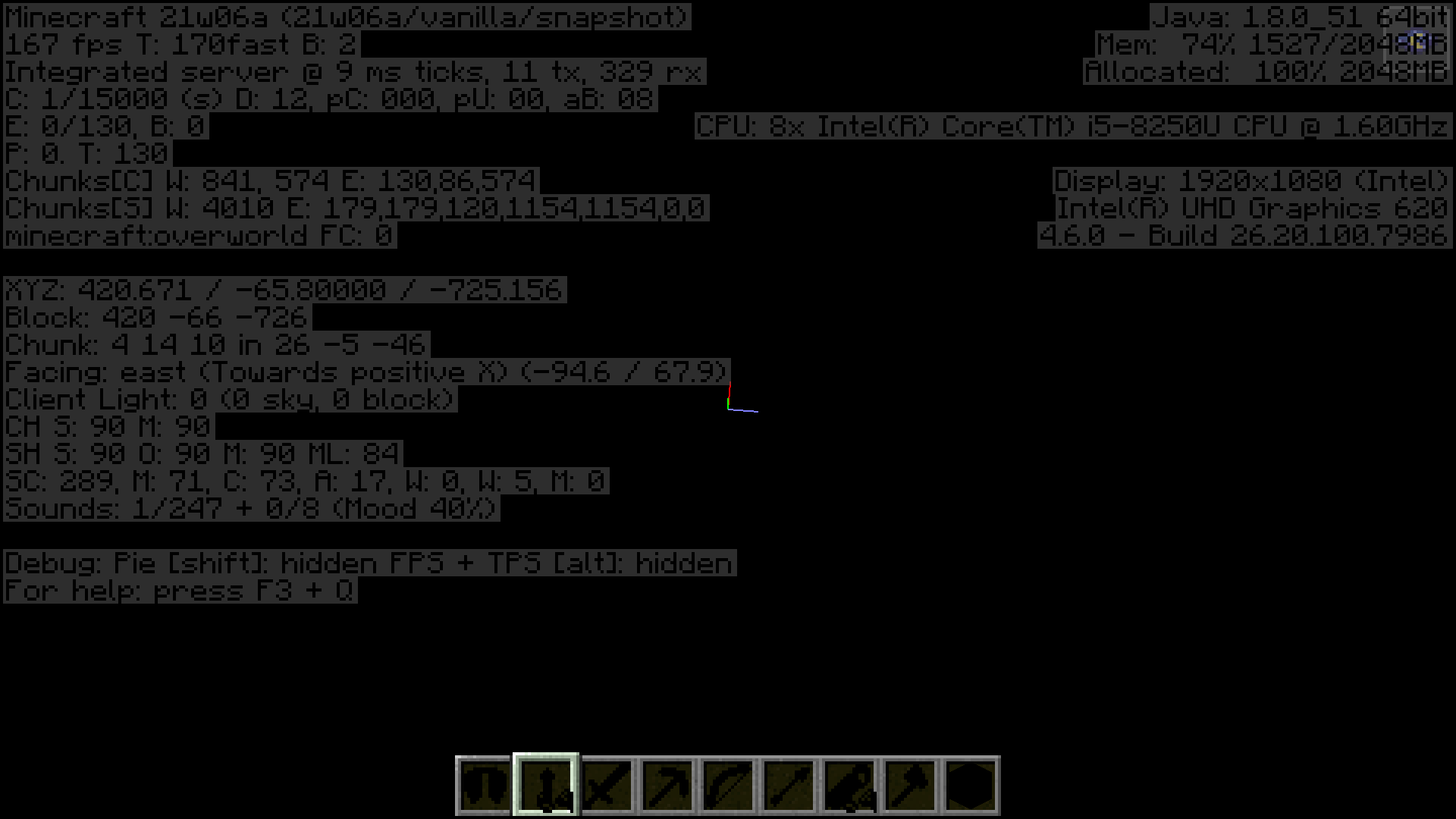 So, if you fall down the void in 21w06a, you get completely glitched out, everything goes dark.