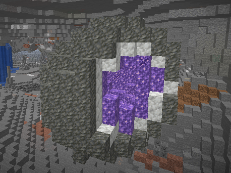 There was an opened amethyst geode that was not attached to anything. When in caves, geodes often spawn with little to no support.