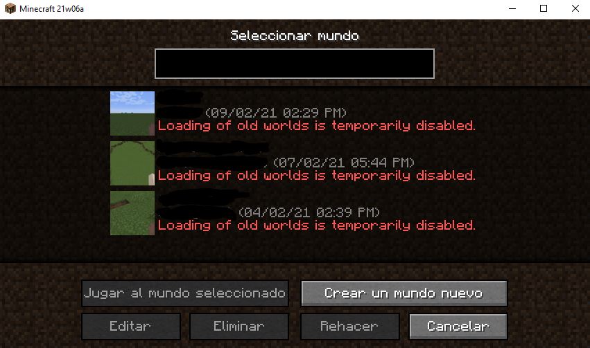 "You'll be unable to open old worlds in this snapshot as there is currently no upgrade path towards the new world height" - https://www.minecraft.net/en-us/article/minecraft-snapshot-21w06a