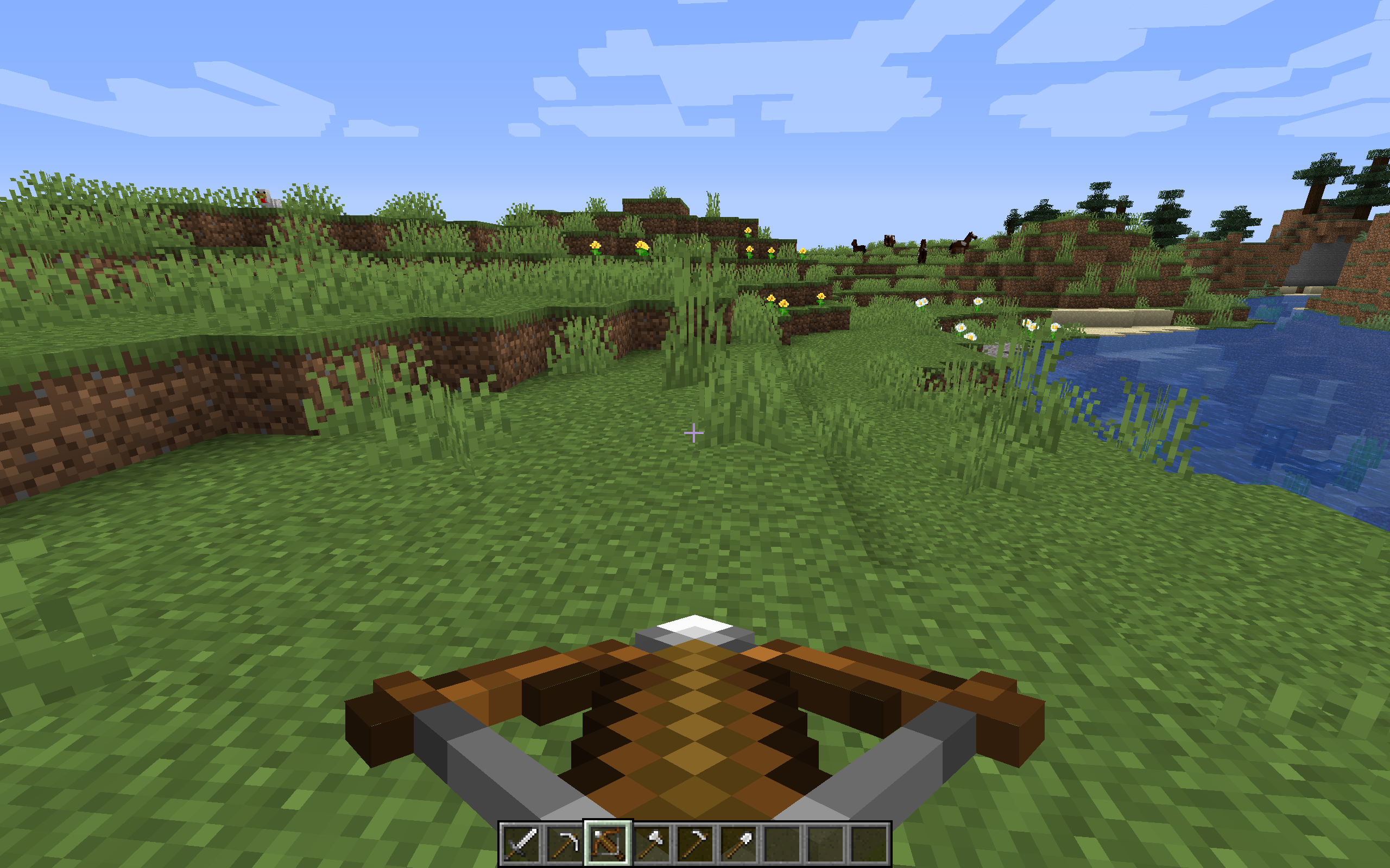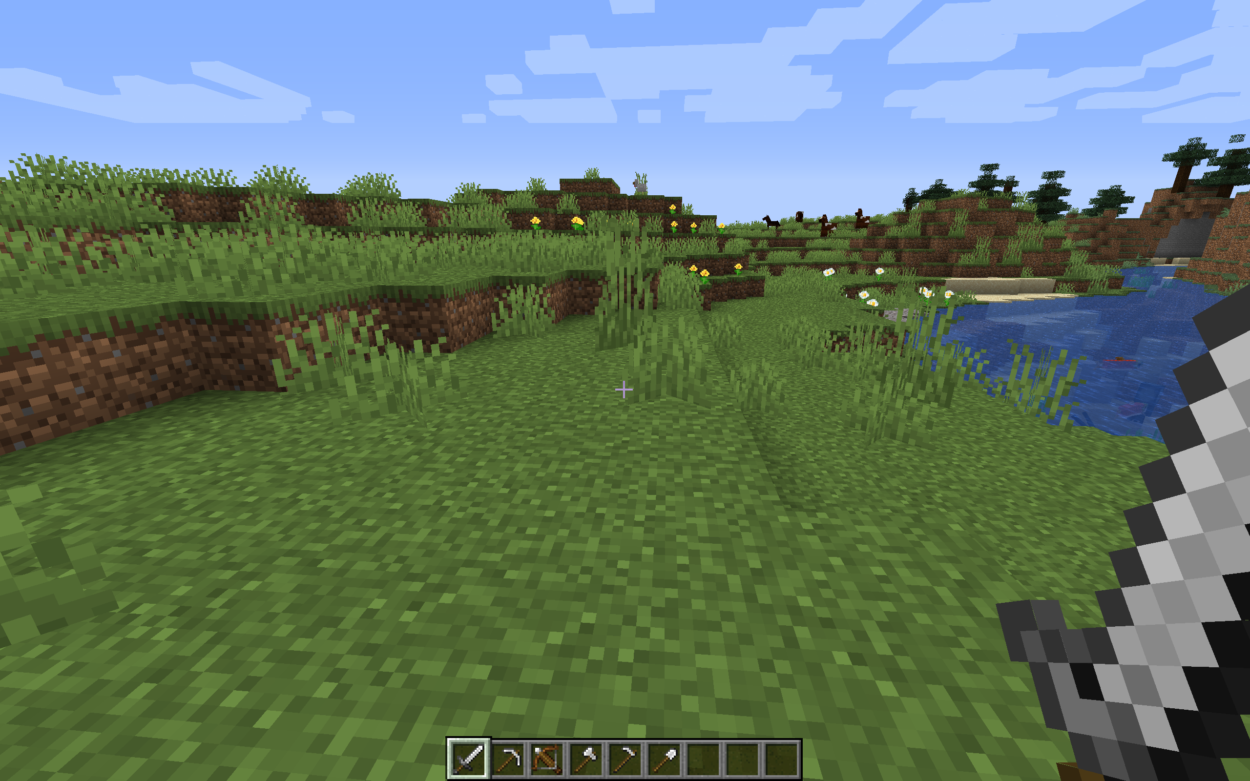 Gaps between the pixels of weapons and tools. This is especially evident on the crossbow.