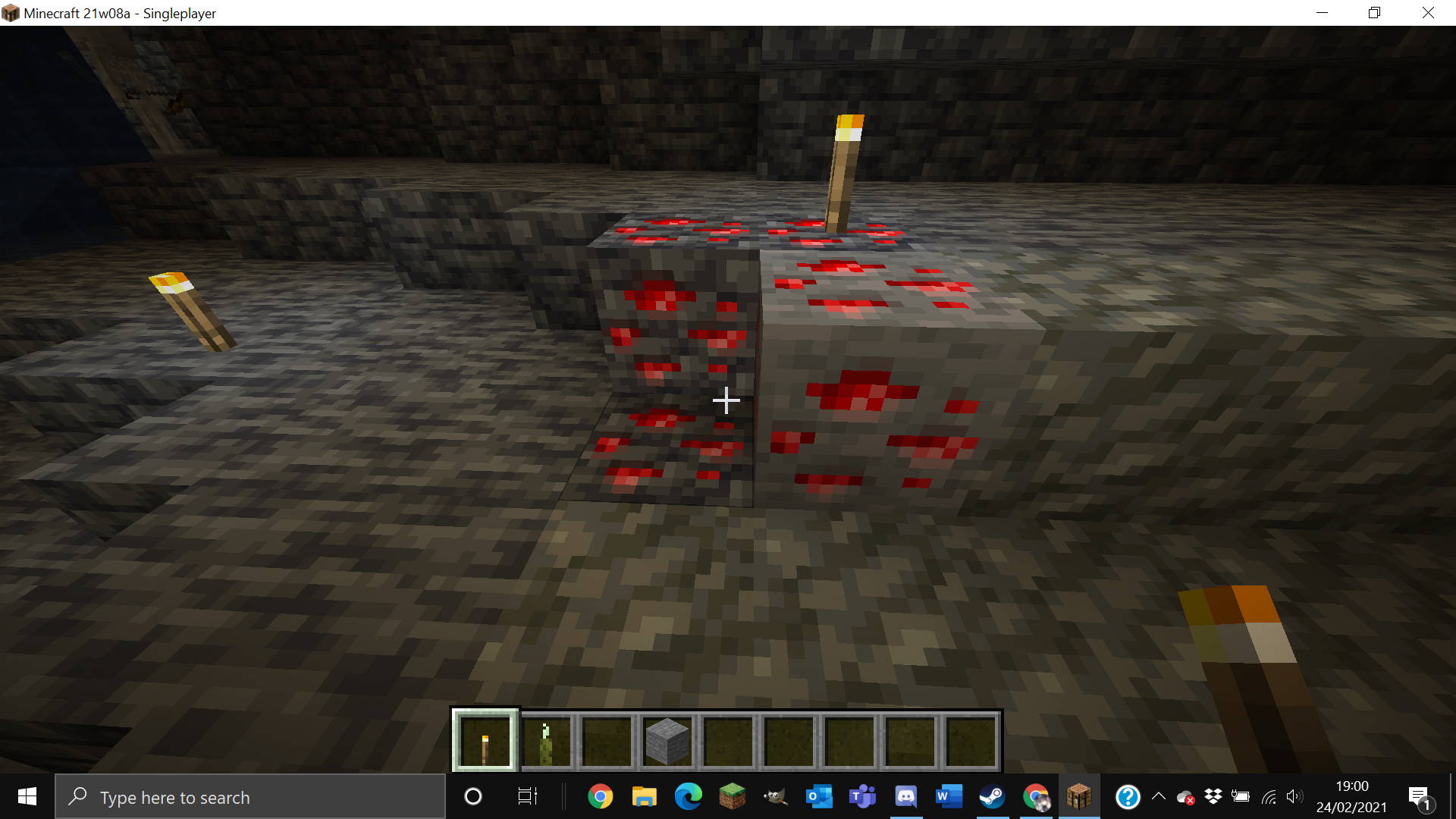 A normal version of the redstone ore generated inside of a deepslate vein under y = 0