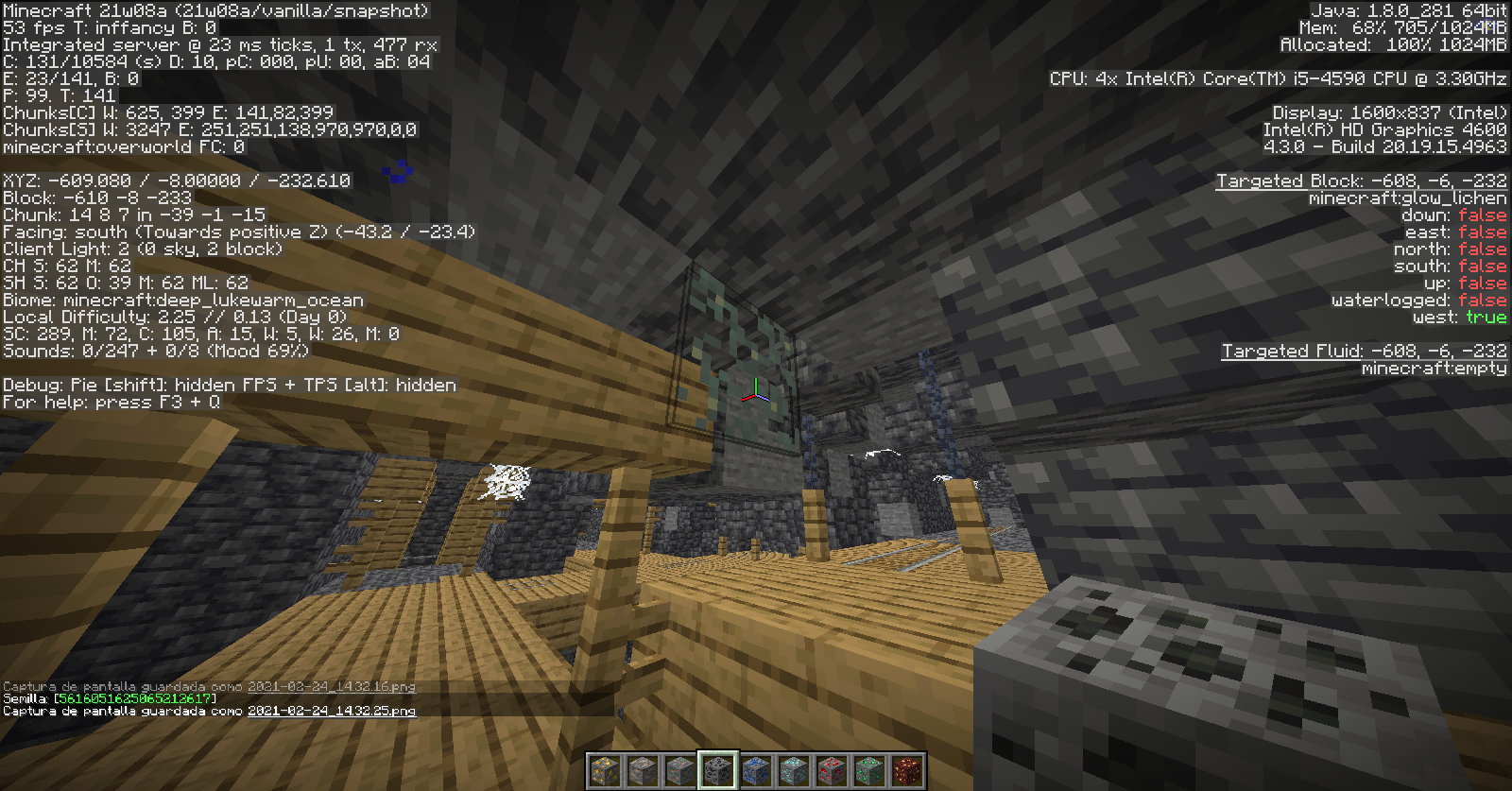 Block coordinates: X=-608 Y=-6 Z=-232