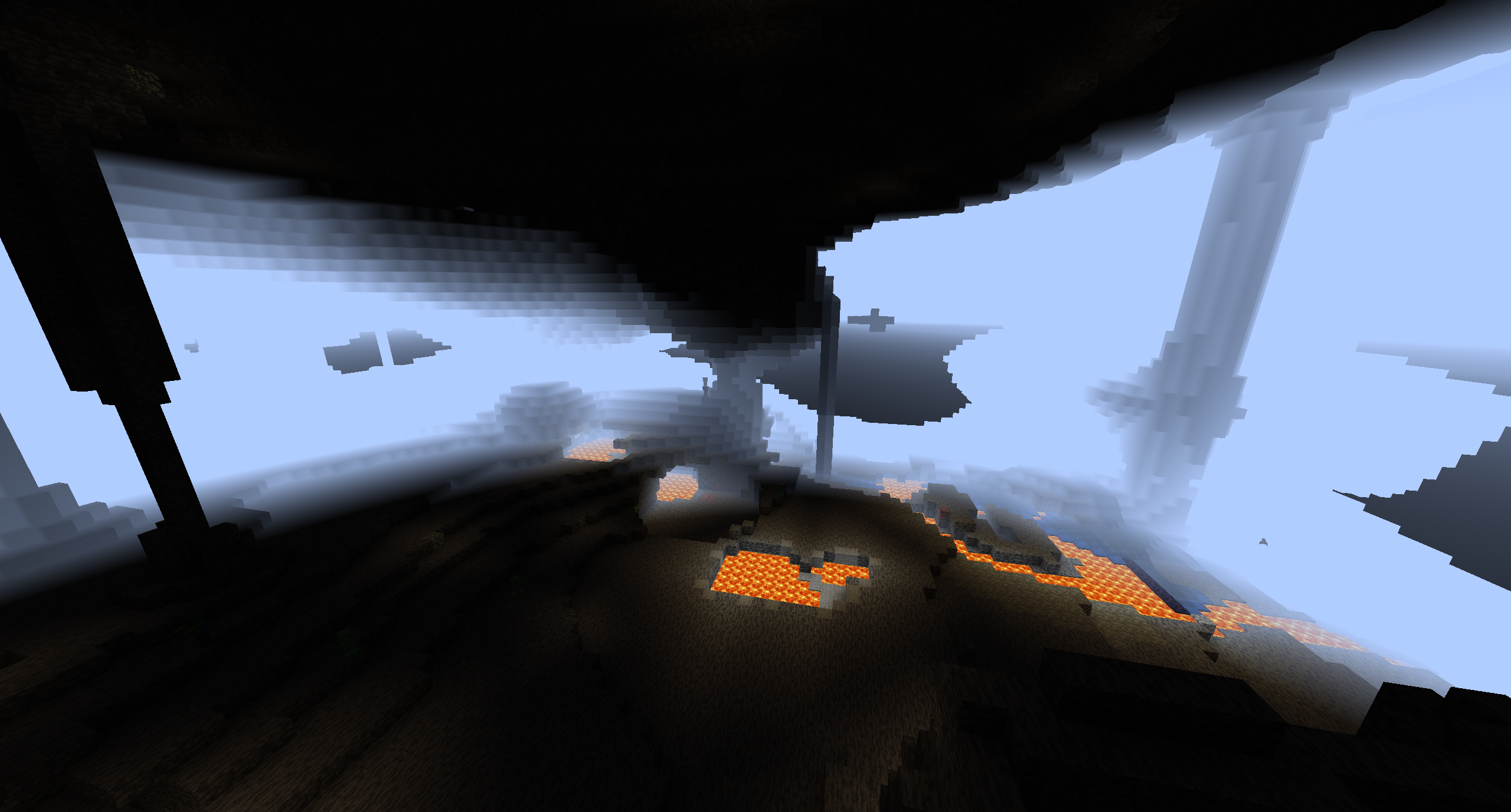 Attached a few screenshots showcasing this issue. The fog is too bright while in caves, especially during the daytime. In some instances, you can even see the sun/moon/stars, despite being deep underground.