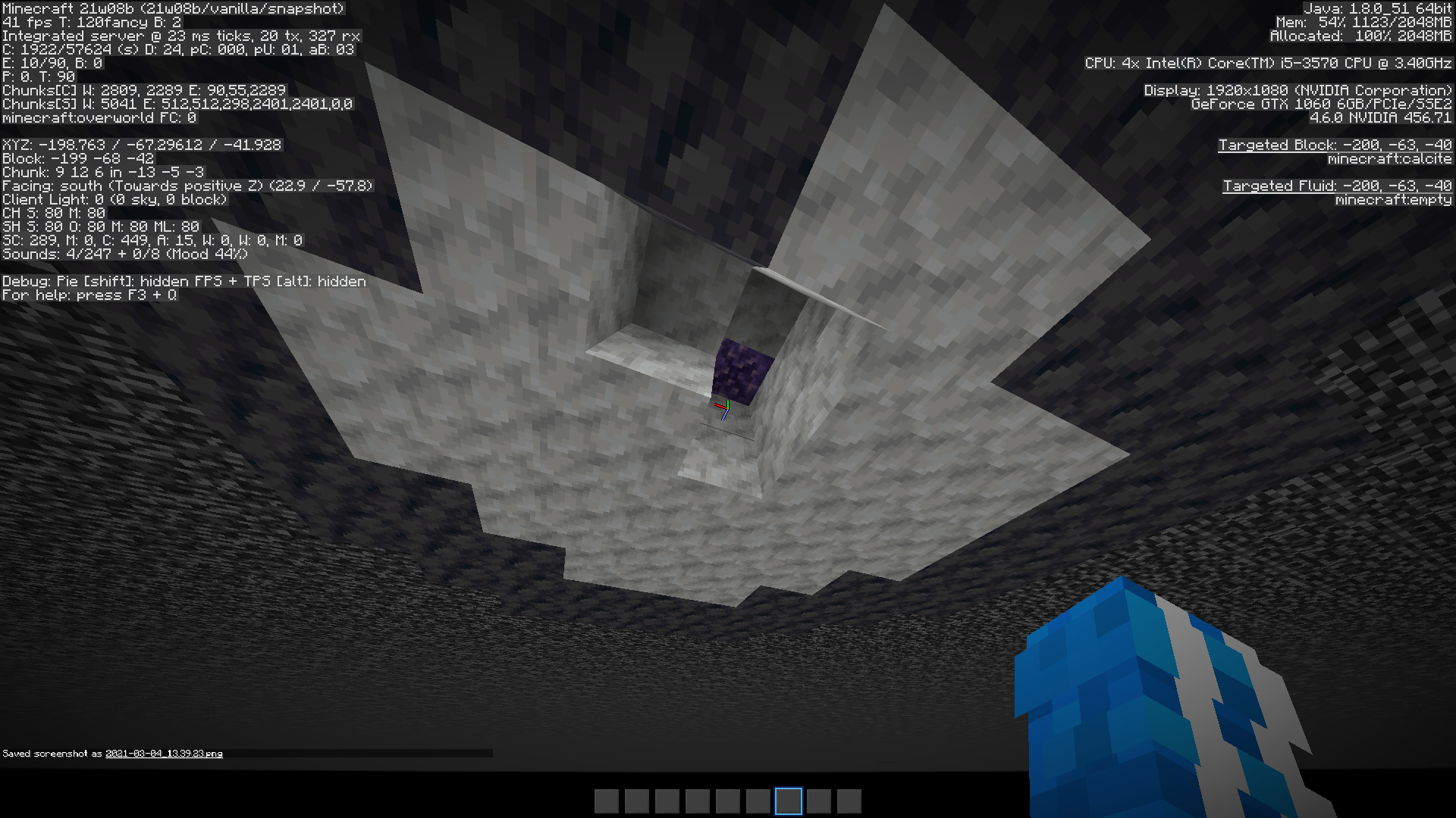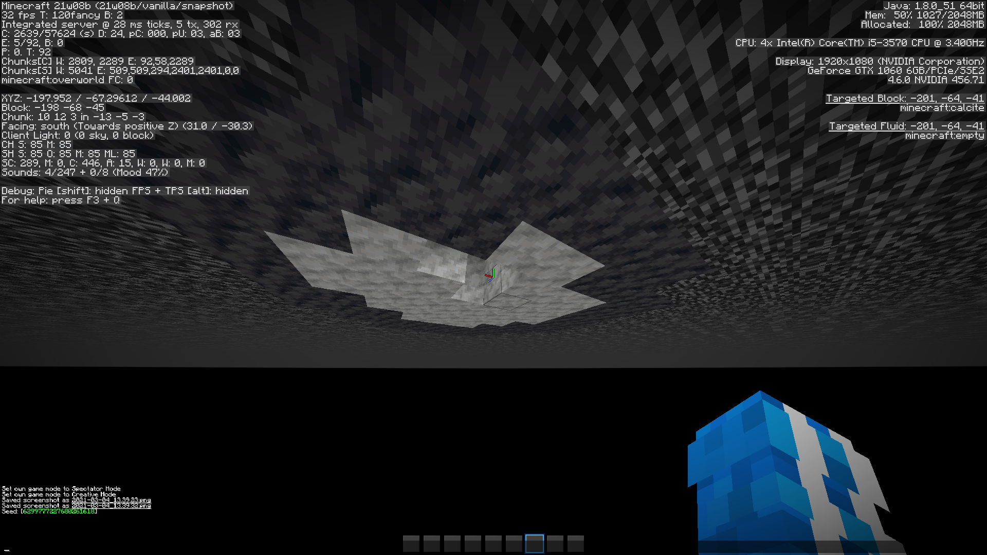Strange underground geode genertator. seed: 6299777227680261618 snapshot 21w08b.
