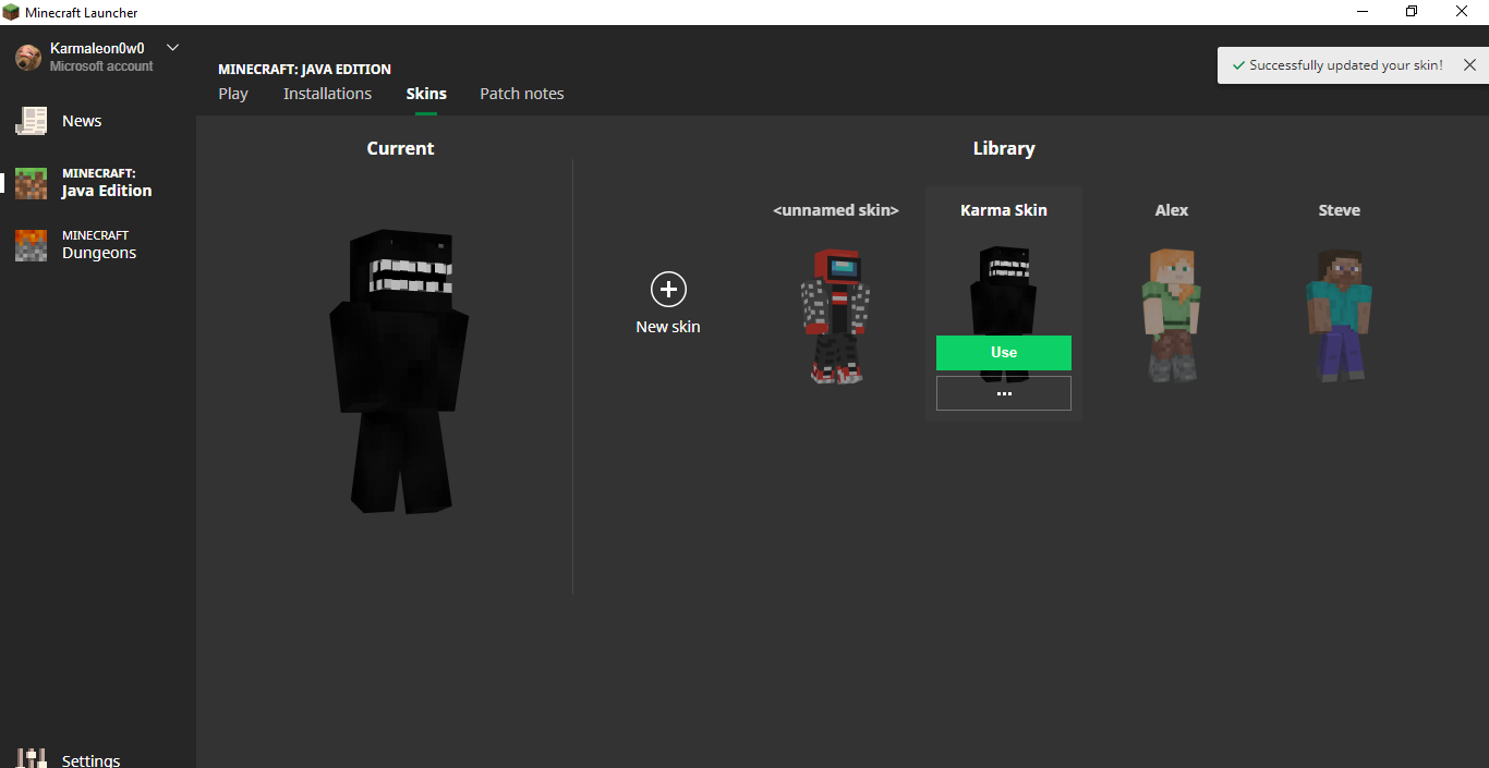 I have an issue,when i want to put my skin in the game,i dont know what happen,but the skin doesnt load and in game i have Alex skin