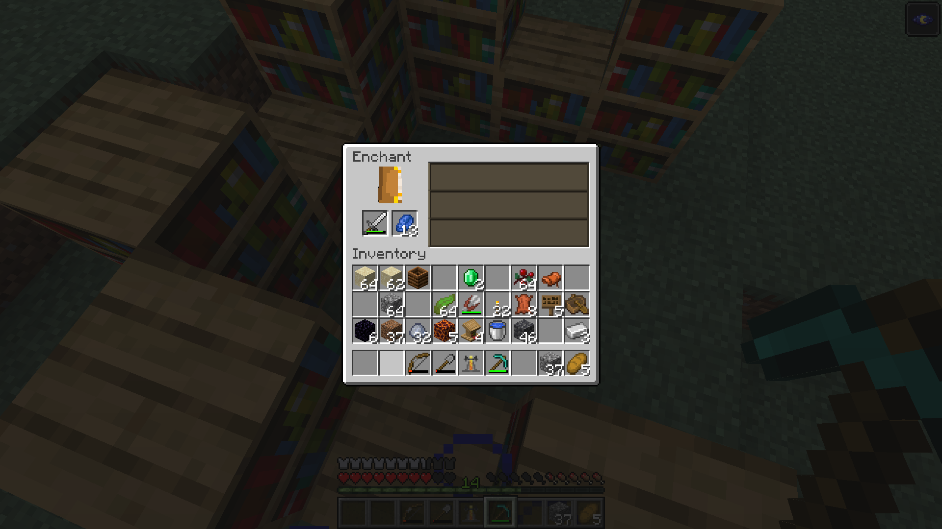 Even I used an unenchanted pickaxe, 15 bookshelves surrounded. Proofs attached!