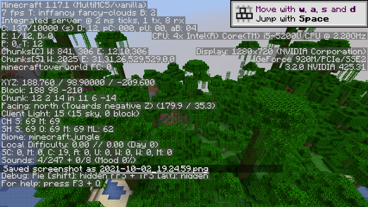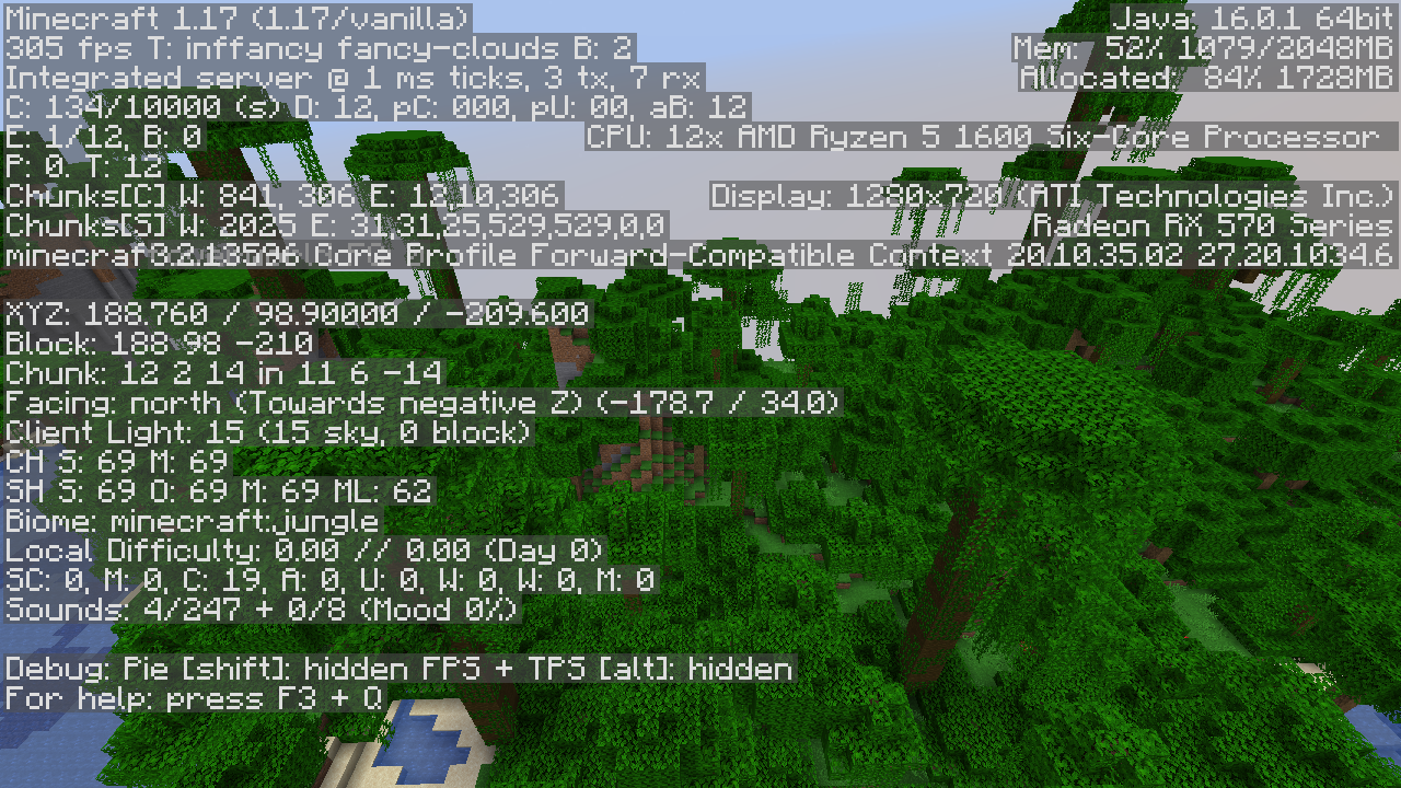 As of snapshot 21w10a, the game renderer has been updated to use newer OpenGL features. For some users, this may result in a loss in performance (FPS) in 1.17 and above. To gauge the impact of this, standard information is requested from affected users. Please follow the instructions below, and leave a comment with the results, as well as details about your system information.