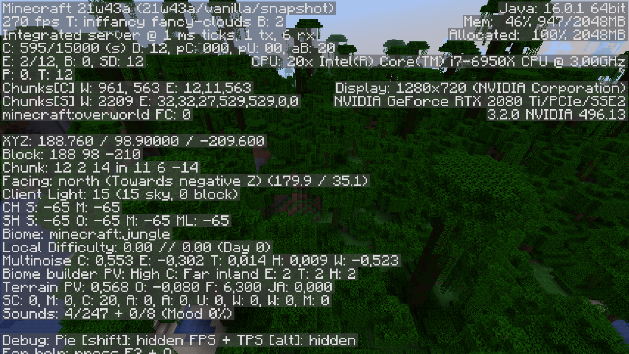 21w08b: Hovering between 195 and 205 FPS (lowest point at garbage collection time)