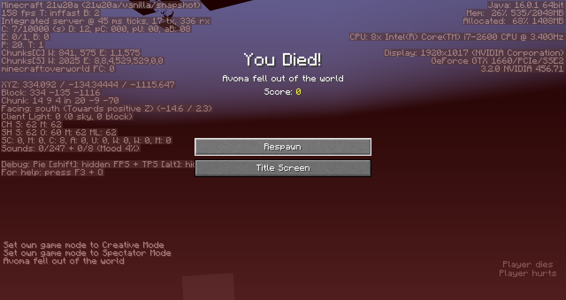 Because MC-214790 works as intended, spectators should not take damage in the void. However, in 21w11a, they do once again.