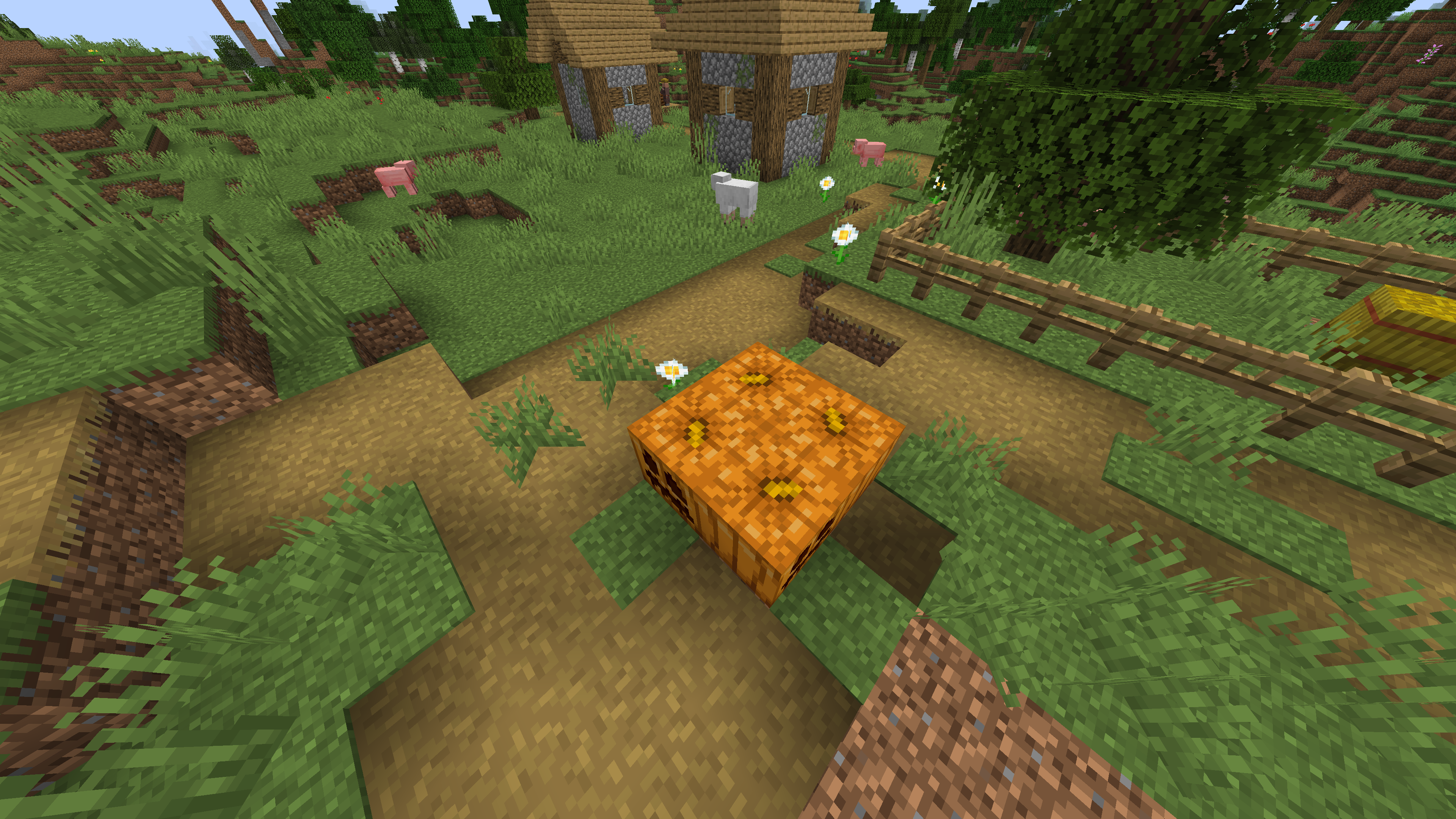 While normal pumpkins cannot make a swastika, carved pumpkins/jack o'lanterns can still be placed to make one, as their top texture is identical to that of the normal pumpkin.