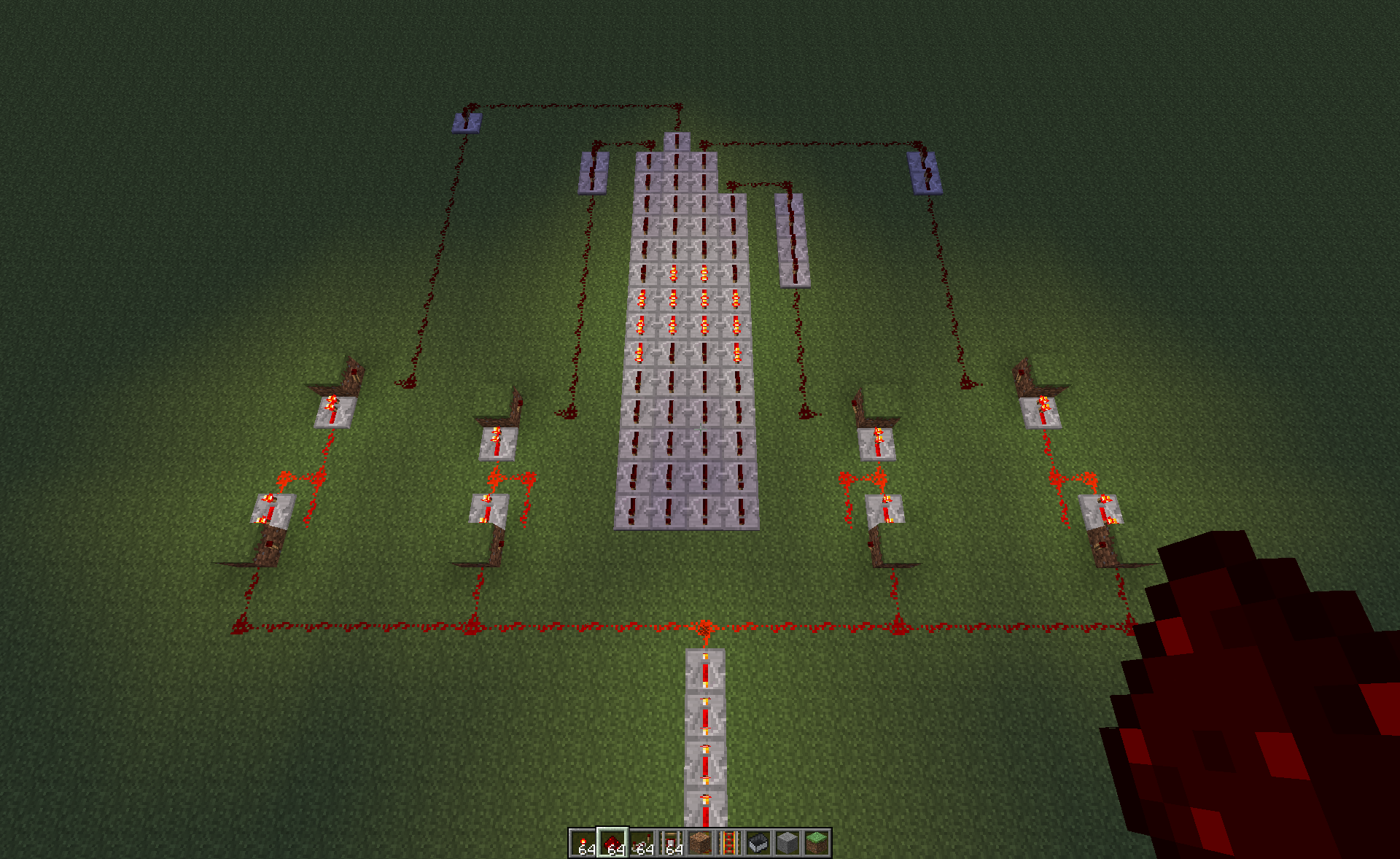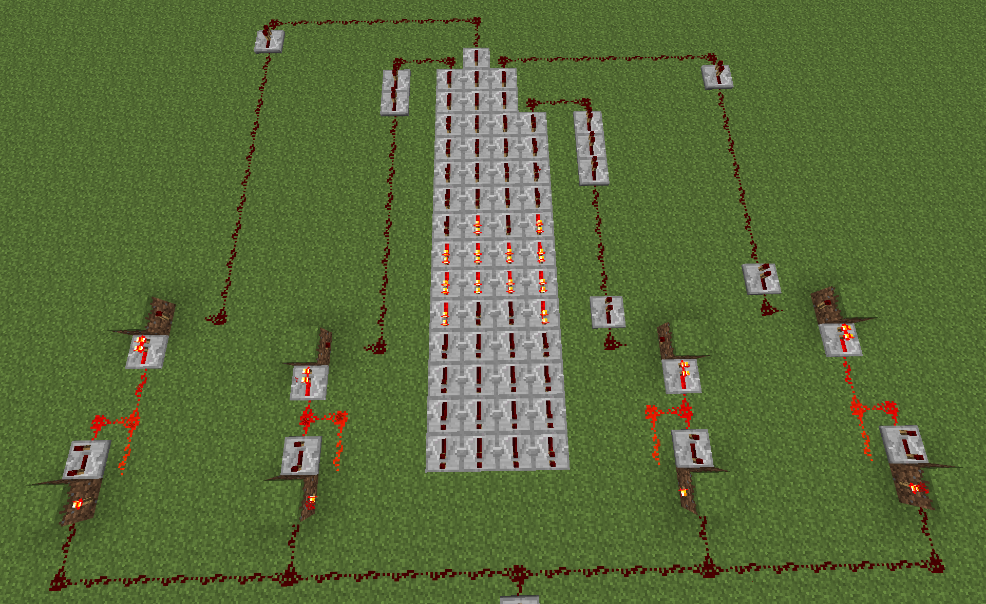1) Although the circuit logic is the same as is the repeater count, the inner ones signal is a tick later than the outer ones