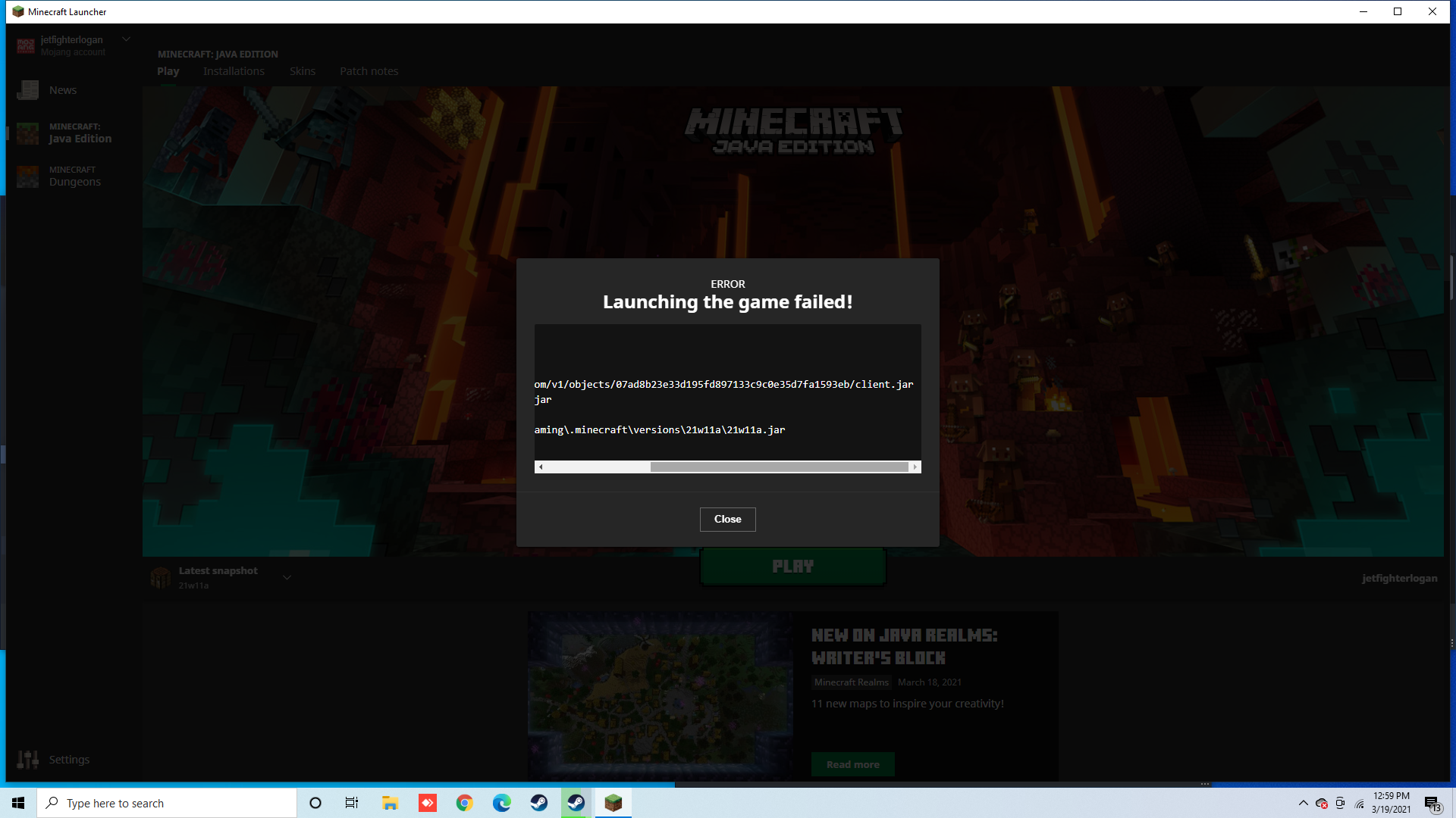 Minecraft says it cant download these files making me not able to play