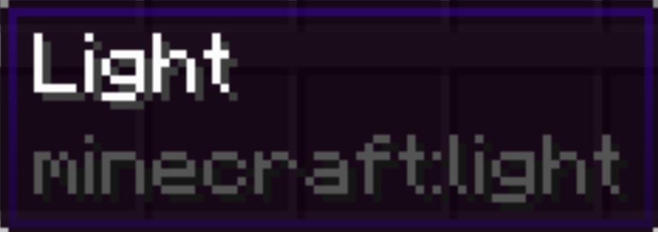 Unlike other commands only blocks (command block, structure block...), the light block name appears in white.
