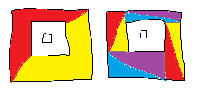 As an example, imagine this is a hopper seen from below. Even though the middle part of the texture isn't visible due to the funnel covering it, it's far more efficient to model this as one cube with two triangles than four cubes with eight