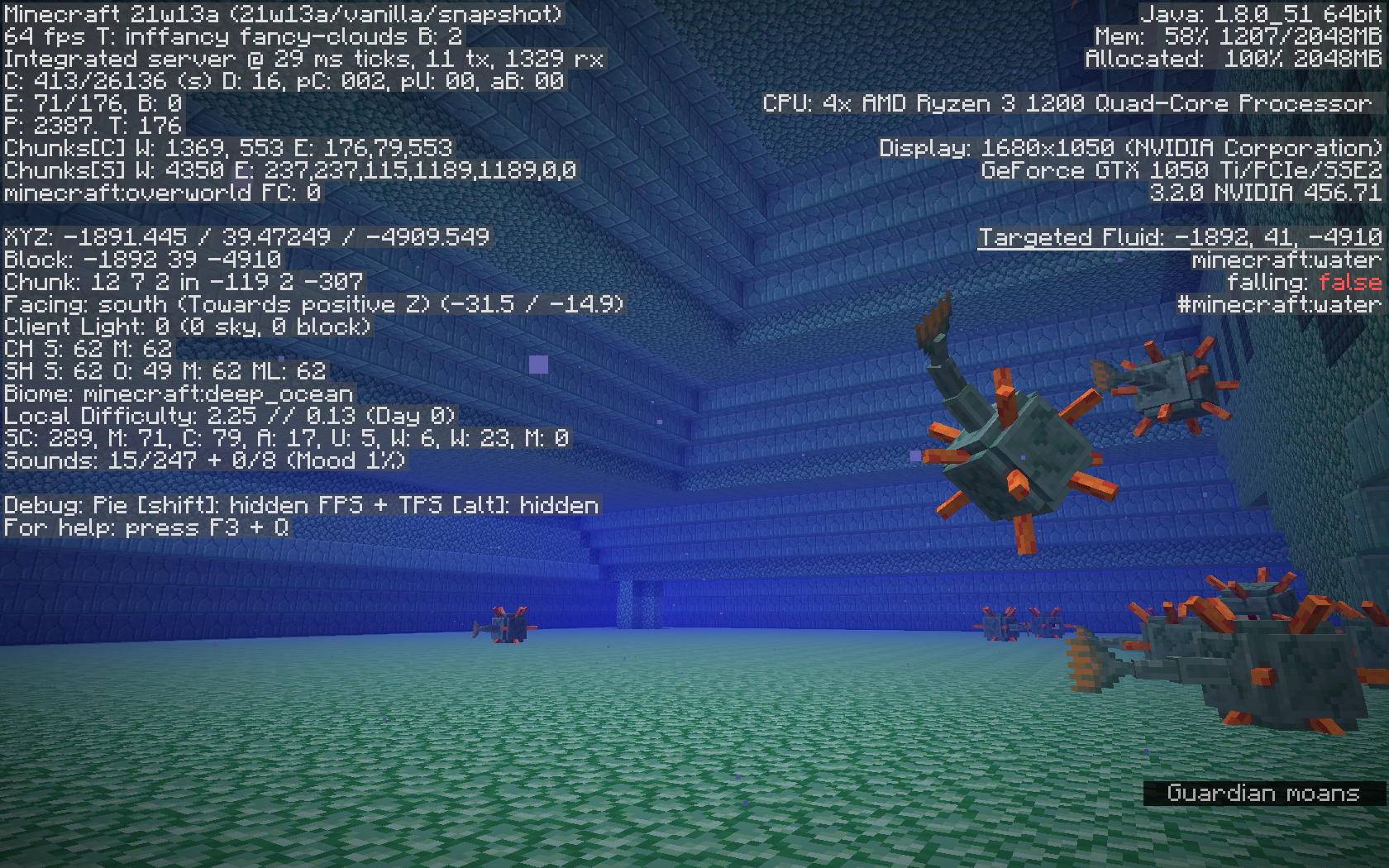Ocean Monuments do not generate interiors, nor do Elder Guardians spawn.