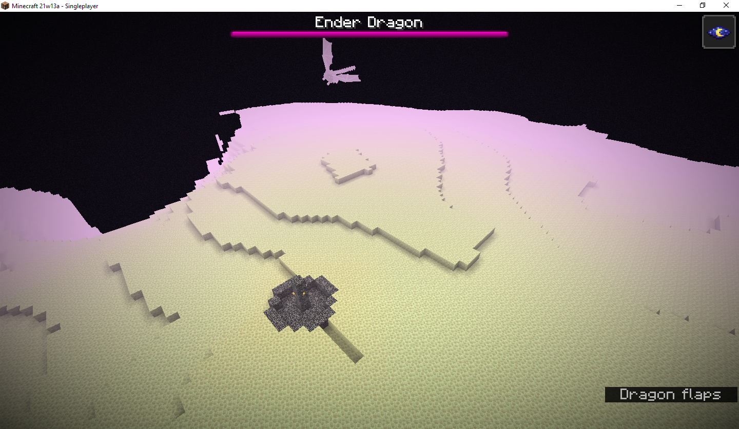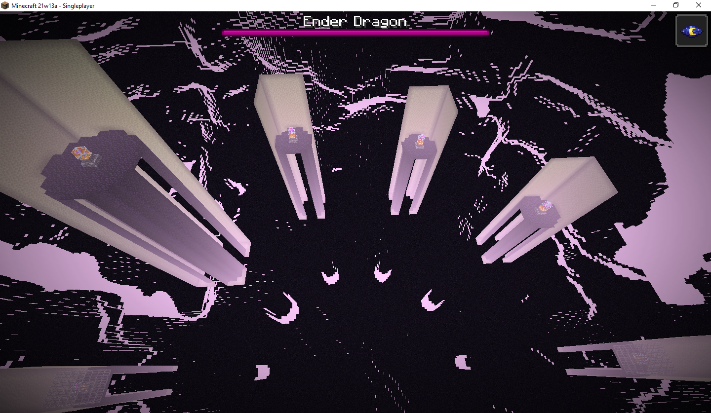 When i was playing on snapshot 21w13a, and i went to the end on the seed 6933163045128785114, i noticed i could'nt break up so i went to spectator mode and the end island was HUGE. the towers were in it... it seemed like 2 or 3 end islands were fused
