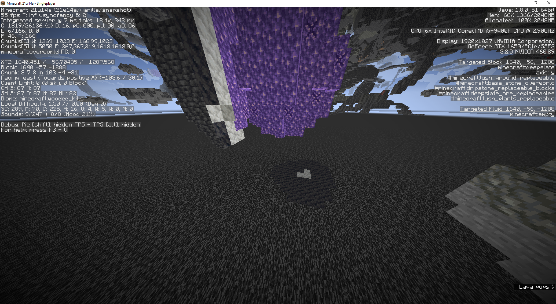 Normally, when a geode generates near bedrock, smooth basalt and calcite generate sorrounding the geode, but it generates instead of bedrock when it's very close to y=-64