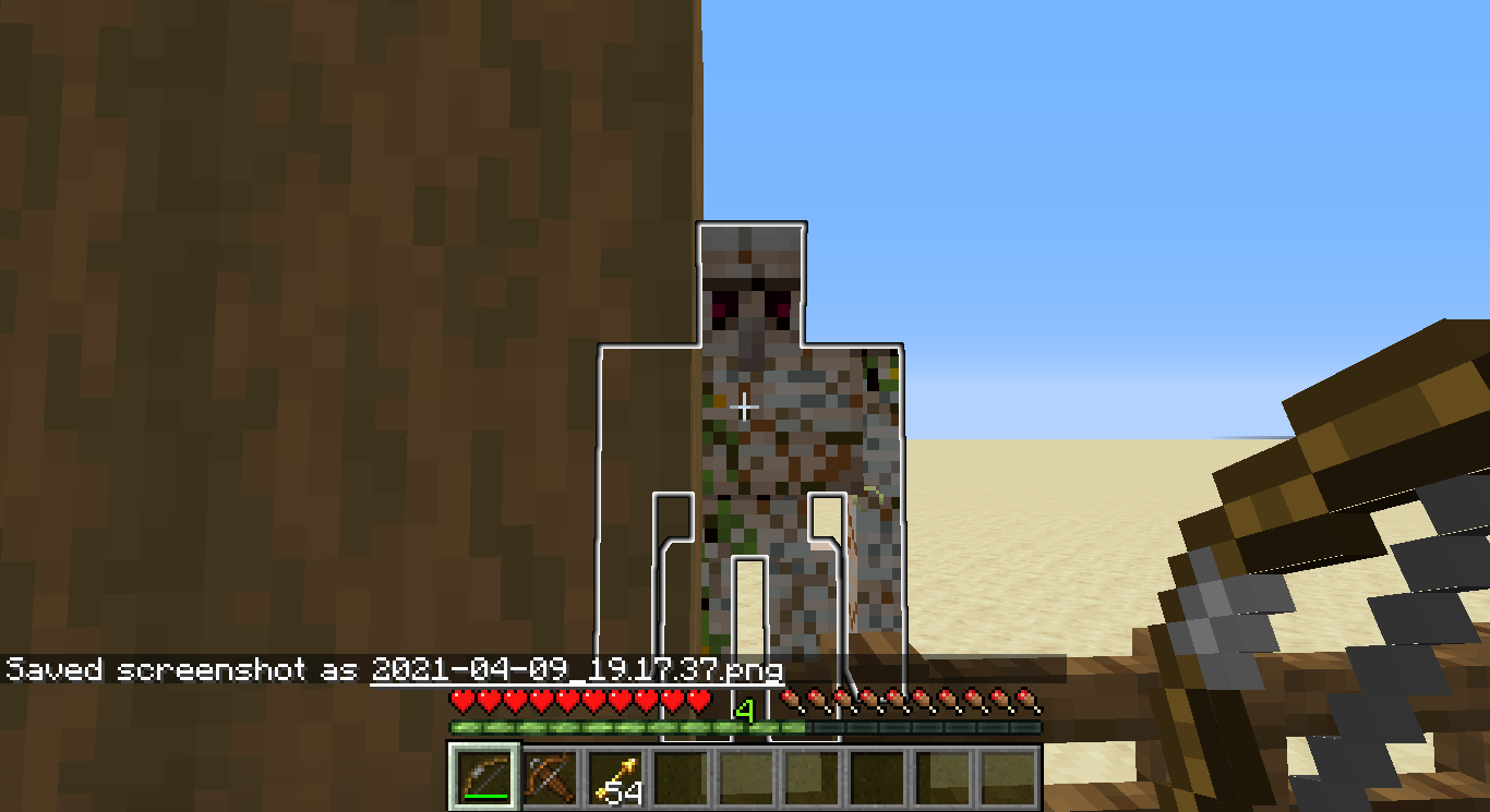 When hit with a spectacle arrow from a bow or crossbow, iron golems glow. When they crack for the first and second time, they have a unique glow texture that highlights all the cracks. In the third/last cracked stage that unique texture goes away. Screenshots are in order from least to most damaged. Just something odd that I noticed today. Is this a bug or a feature?