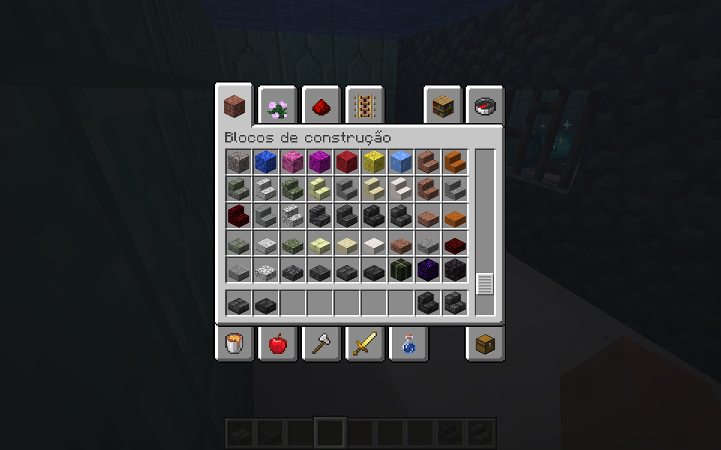 As we can see in the image, there is a small error in the order of the stairs and slabs of deepslate bricks and deepslate tiles.