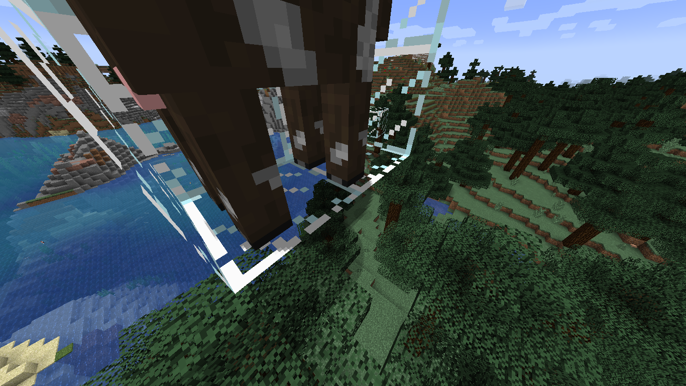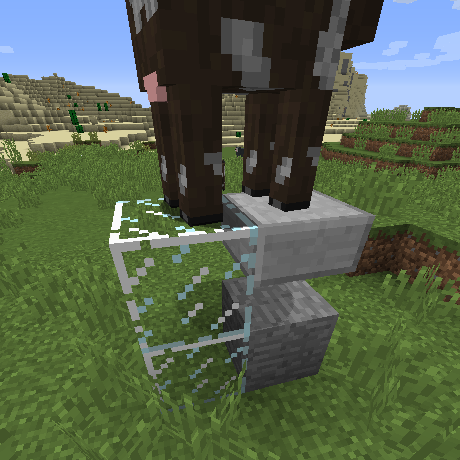 Summarily, an entity will cast a second shadow one block under its own if over at least two blocks of non-opaque blocks. It must be at least two blocks of glass, stained glass, or regular ice but Not glass panes, tinted glass, honey, or slime blocks (blocks whose transparent insides / tops are not culled away in an internal view such like glass does). The two blocks can be mixed and matched from the list (though some combinations, such as glass on ice, look normal for there to be a shadow on). More layers do not seem to produce more shadows. This is not a duplicate of MC-21024 as those shadows are merely misplaced, but still properly numbered (though the edge cases between the two produce interesting results, such as the contiguous shadow in attached photo 18w46a.png). This behavior does not appear before 18w46a; I suspect it's been present ever since then. The set of photos with the cow and the dropped glass item are taken in a glass cage through spectator mode.