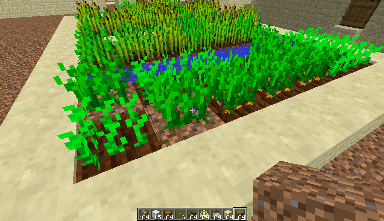 I was in superflat desert when I discovered a village. I was making a map and I decided to get rid of the crops for fun. I jumped on an potato plant that was fully grown, and the dirt reverted to normal, but the potato plant stayed there as if nothing happened. This also applies to carrots. The first screenshot will be a carrot and the second will be a potato.