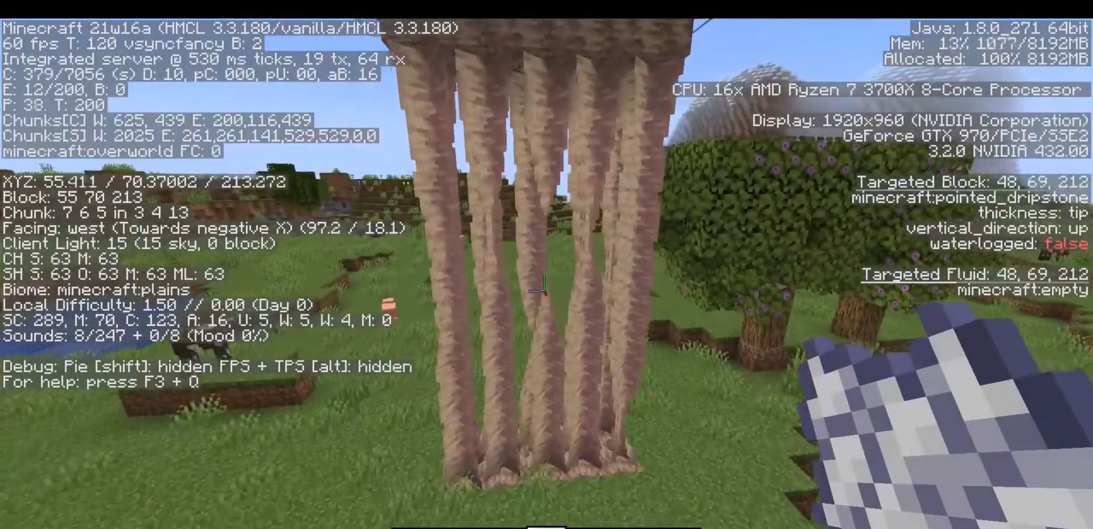 Creating a valid structure for stalactites to grow, setting the randomTickSpeed to 30000 and waiting.
