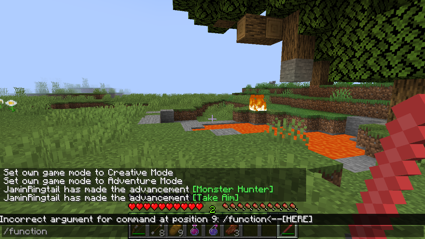 Your command has a syntax error, preventing the function from loading, as the game log reveals. Please do not use the bug tracker for data pack help
