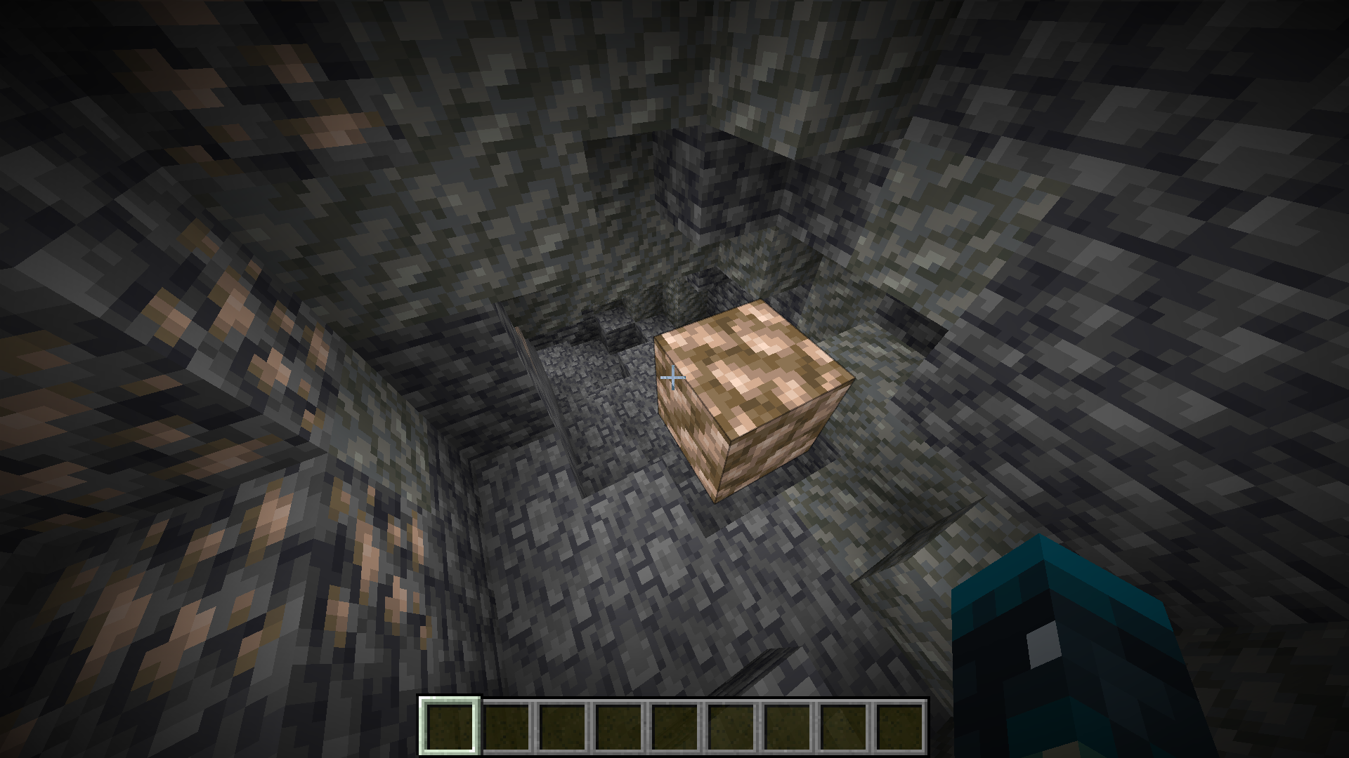 I found a cave cutting through an iron ore vein and a raw block wasn't affected by the cave. This happened in a noodle cave so I'm not sure if it also happens in other cave variants.